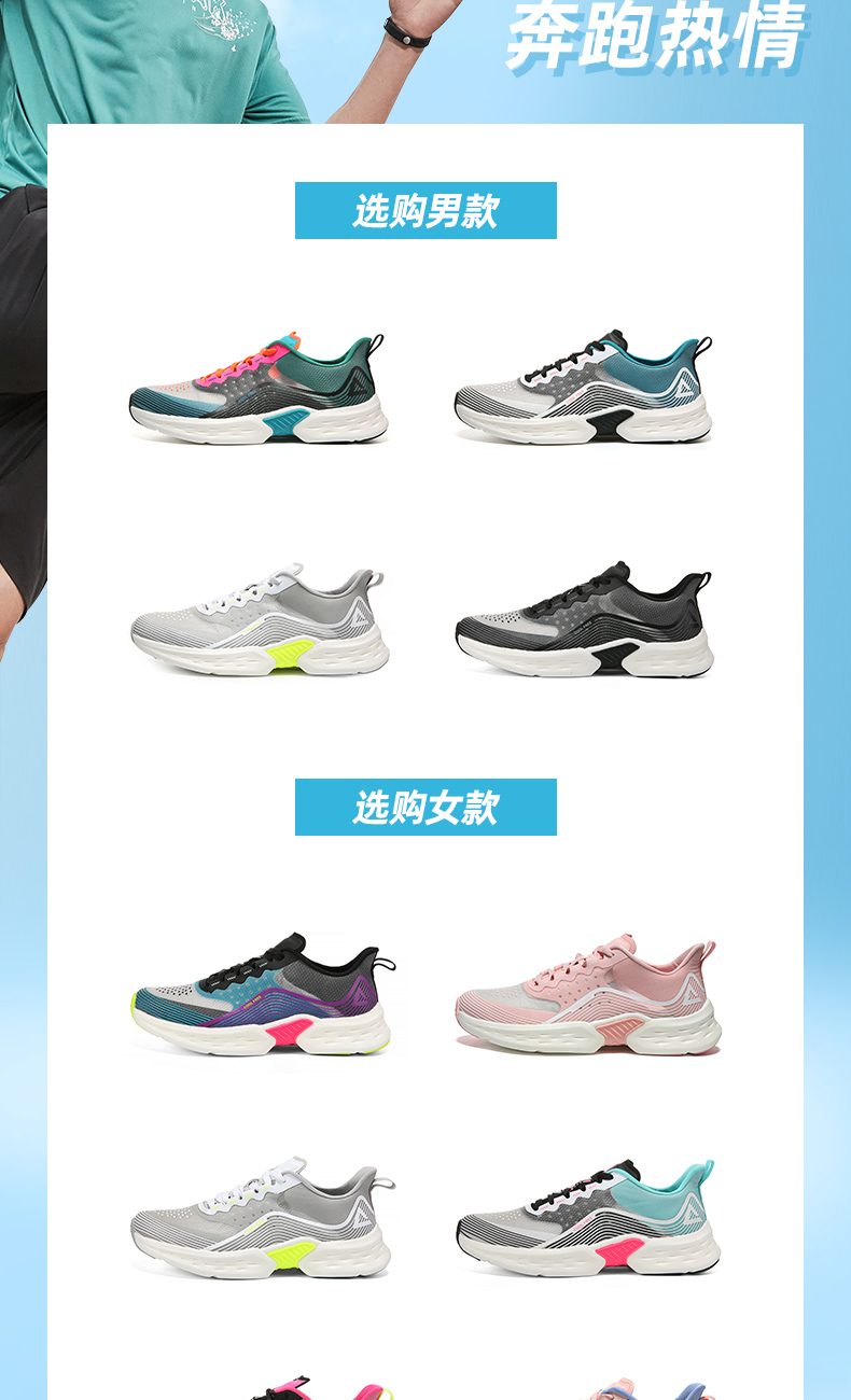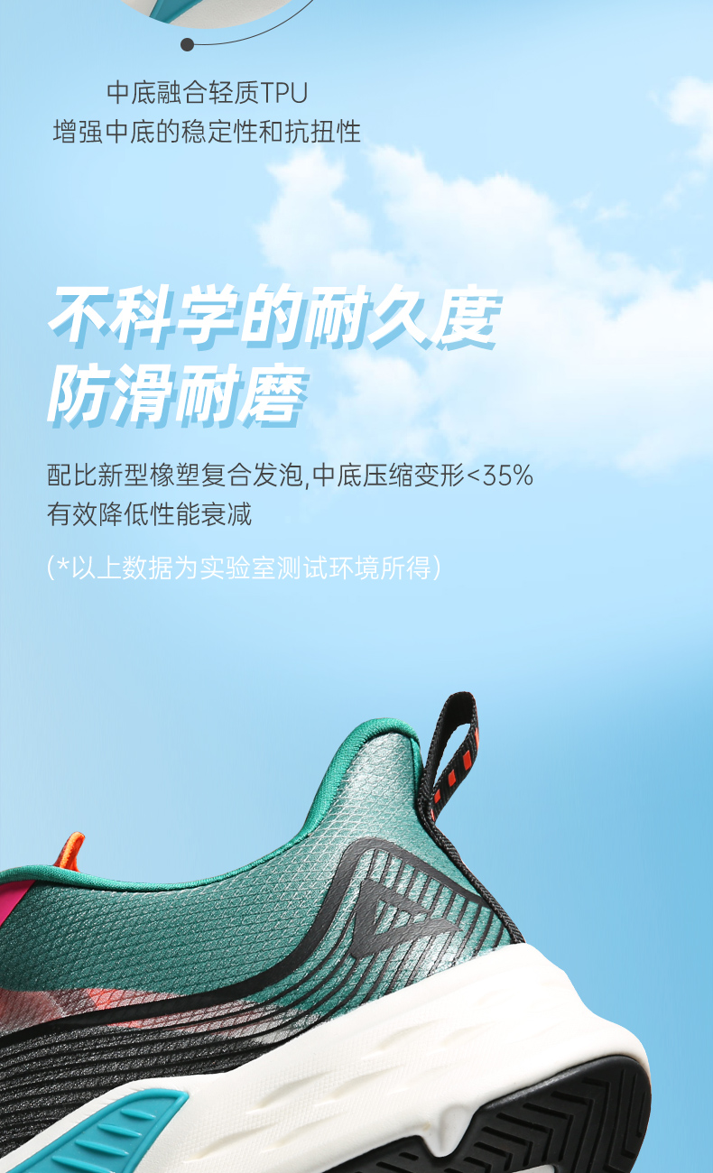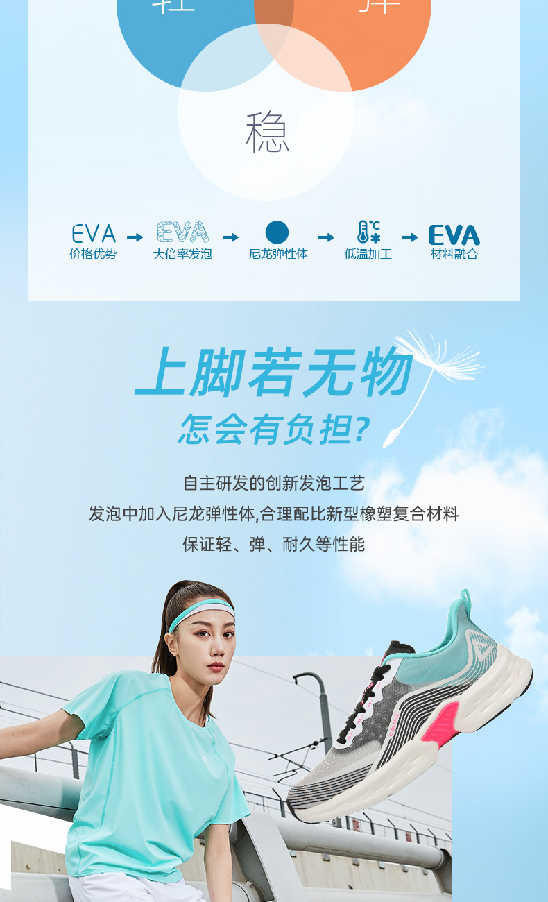 核心的中底部分,使用自研创新的发泡工艺,在平常的EVA发泡中加入尼龙弹性体,合理配比新型橡塑复合材料,在轻、弹、耐久等跑鞋核心性能中寻找平衡点,35人专项小组通过12个月研发,因为有了态极的口碑,这款轻弹自发布以来也一直是匹克的爆款。