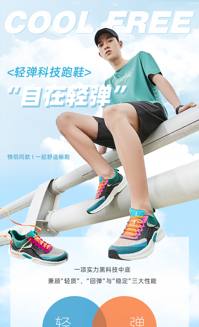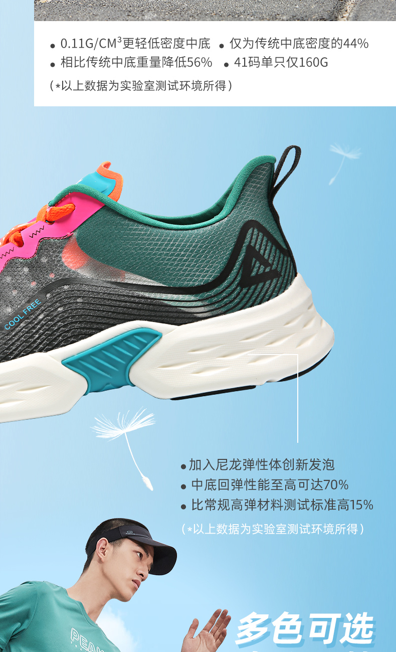 鞋面是搭载COOL FREE科技的冰感透明纱材质,轻灵透气,保持更强的透气性能,其它的细节方面,中底融合了轻质TPU,保持中底在运动时的稳定性和抗扭性,鞋底分块橡胶材质,防止中底的过度磨损,提高整鞋的耐用性。