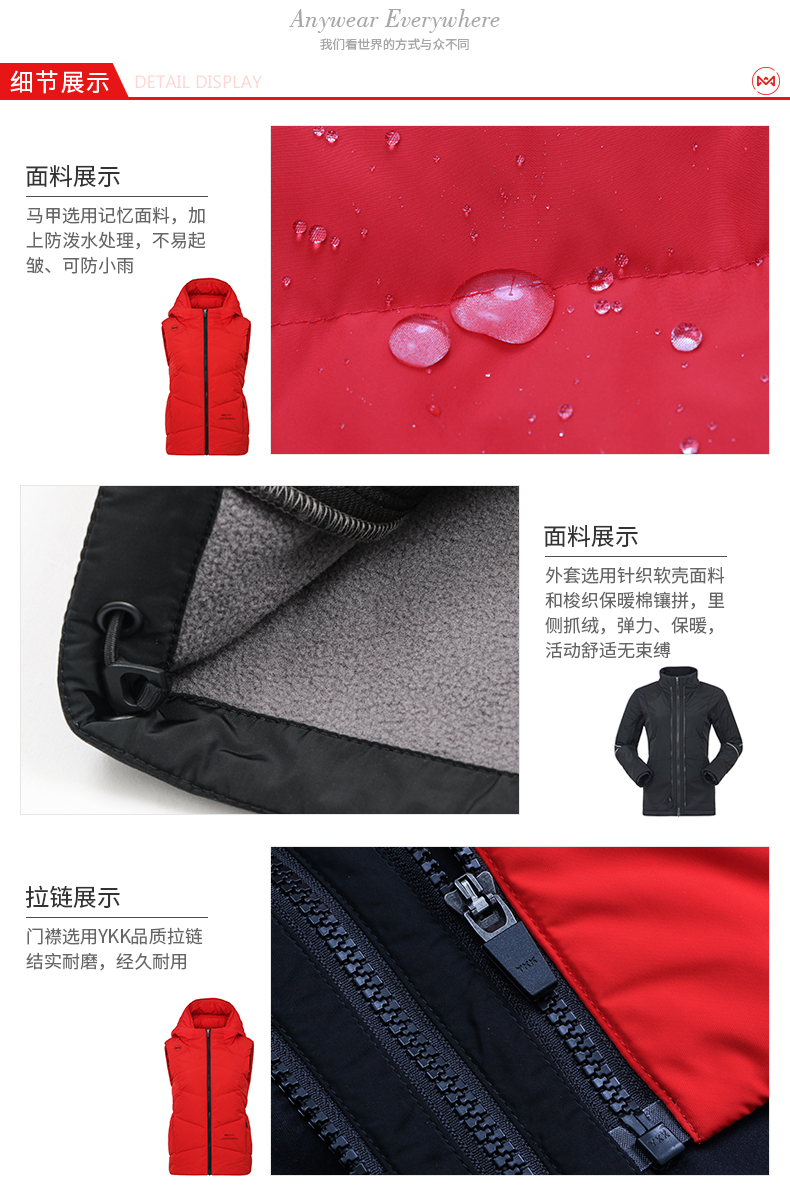 这款地球科学家是羽绒马甲+保暖软壳的组合,可以一起穿,也可以分开来单独穿。