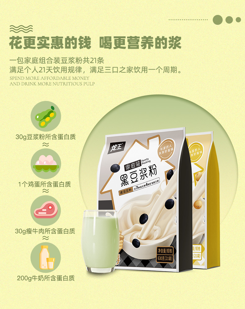 送豆乳饼干1袋。肯德基豆浆供应商,龙王升级版豆浆。精选东北黑土地有机大豆为原料,脱壳去腥,传统风味古法制做,豆香浓郁,营养价值高,0胆固醇,0脂肪酸,不添加任何蔗糖,豆浆粉质地细腻,温水冷水皆可冲泡,溶解快速不结块。独立小包装,易携带满足上班人群,建议每包兑水150ml冲泡口感更佳。领券链接点此