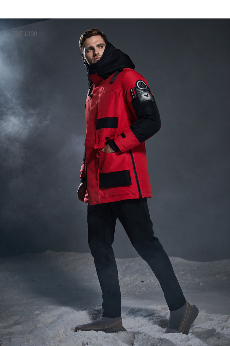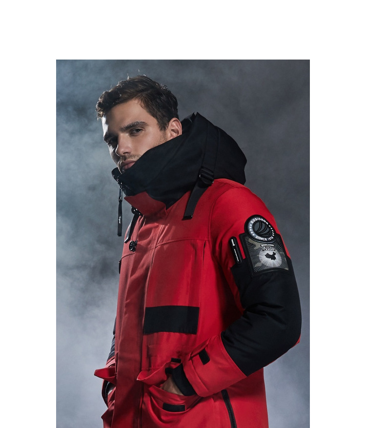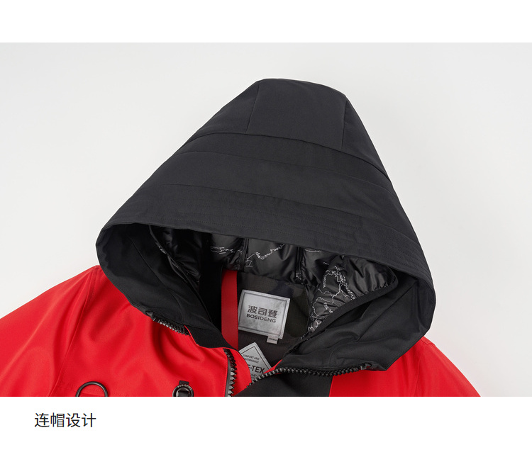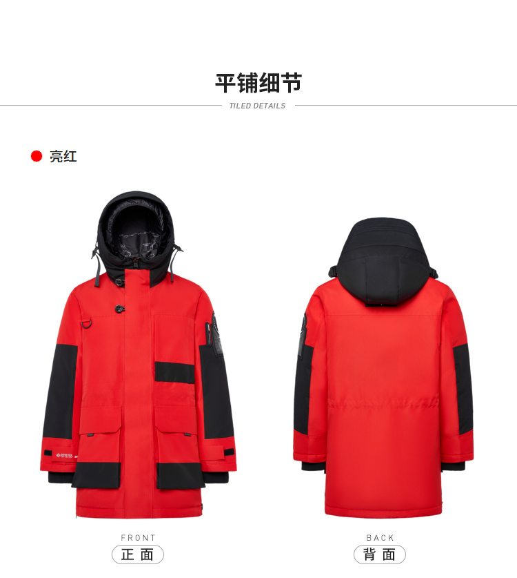 复古工装廓形,穿着时尚帅气,便携式背带设计,穿脱方便,防风连帽+双层门襟+双重防风袖口,全方位防风,确保户外出行保暖。