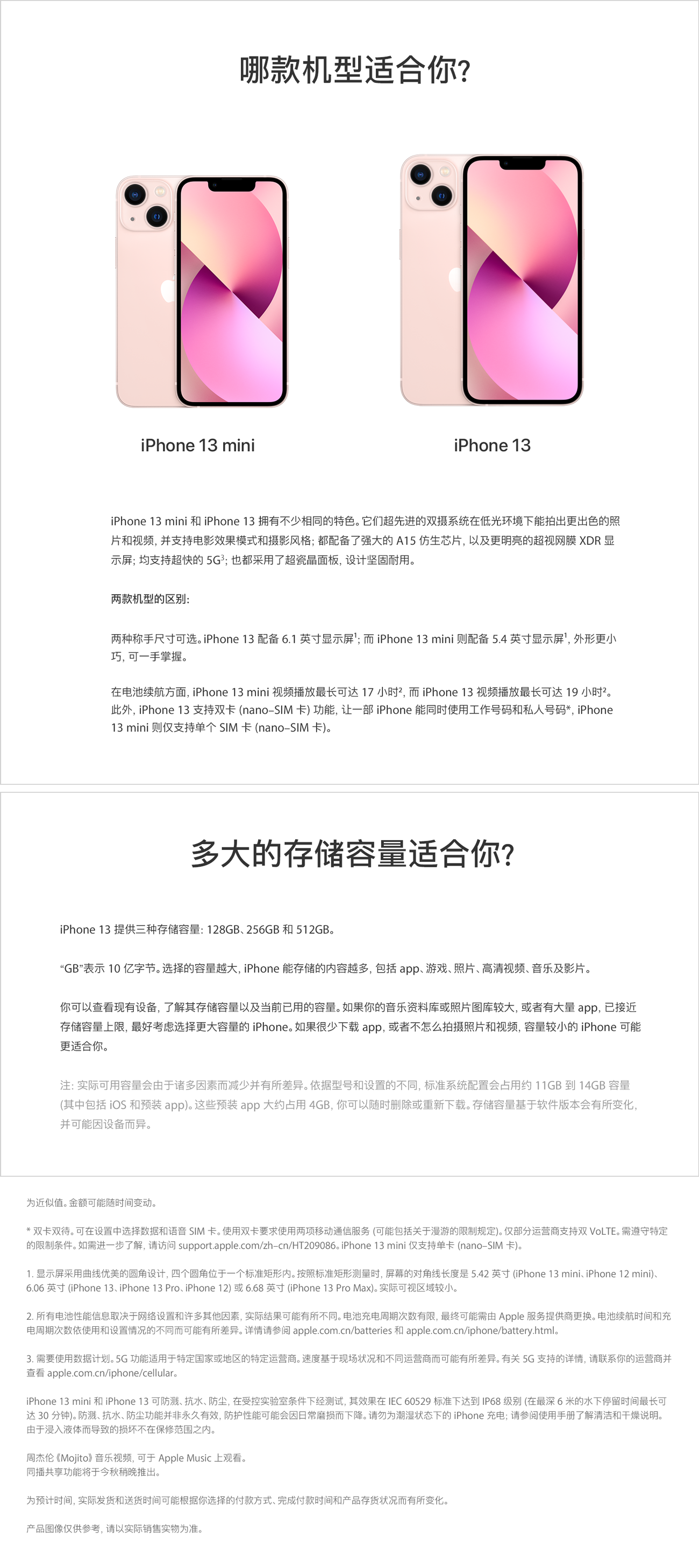 配置方面,iPhone 13 全系列搭载 A15 芯片,6核心 GPU,图形处理性能提高30% ,相比A14芯片在性能和功耗上都有显著的提升。采用全新 16 核神经网络引擎,适用于各类机器学习任务。续航方面,iPhone 13 相比 iPhone12 续航多了2.5个小时,iPhone 13 mini 相比 iPhone 12 mini 续航多出 1.5 小时,可以满足使用一天的需求。