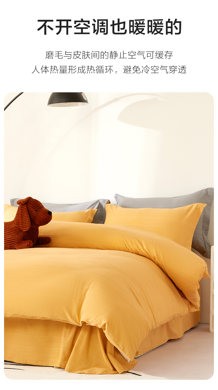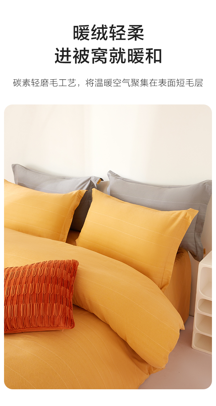 这款Beyond·live 博洋·生活 云感高柔双面磨毛秋冬加厚床上四件套,100%长绒棉,绵柔细腻,蓬软亲肤,舒适透气;碳素轻磨毛工艺,将温暖空气聚焦在表面短毛层,温暖肌理,厚实富有质感,增强绒绒温暖感;环保活性印染工艺,对敏感肌友好;八根绑带,固定被芯,安稳熟睡。飞边枕套,简约大气,舒适百搭。