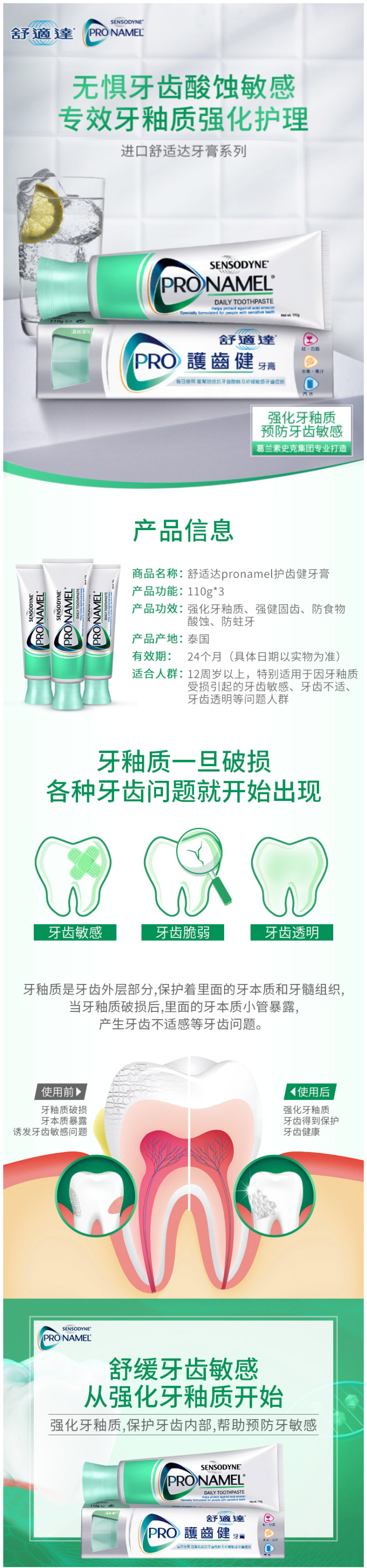 这款舒适达 牙釉质护理系列 Pronamel 护齿牙膏,产地泰国,是专为敏感牙齿设计,可以维持牙釉质的健康,使其变得更加坚固,并提供更好的防护,让牙釉质不会受到日常酸食的为危害,升级了清新空气,改善食物残渣引起的口腔问提。