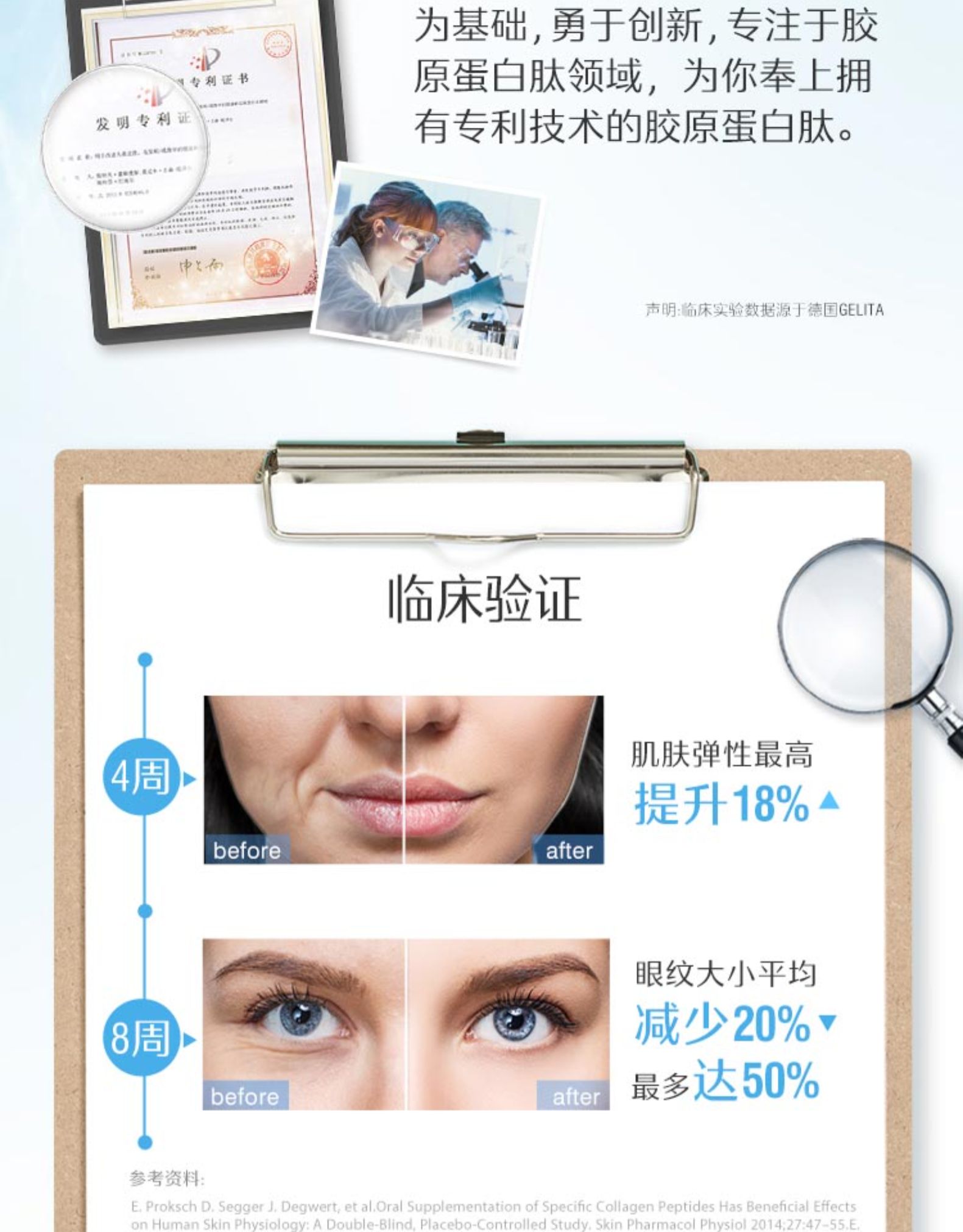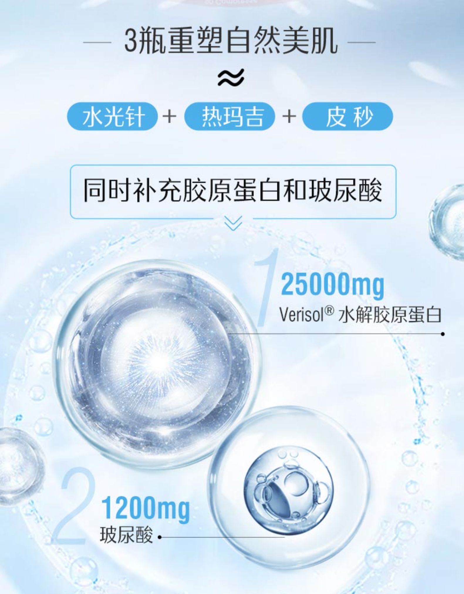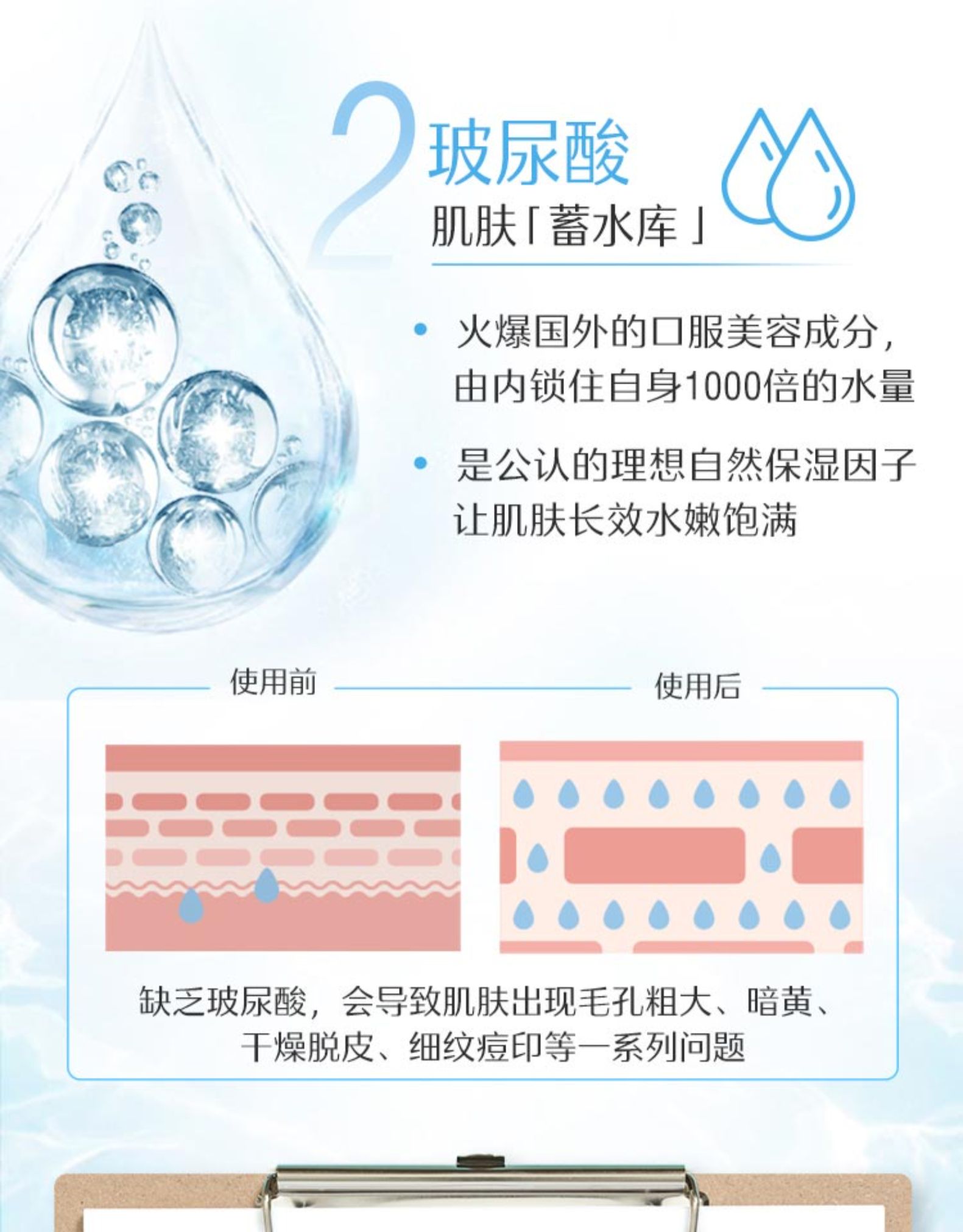 这款Swisse 医美级口服玻尿酸胶原蛋白水光片,澳洲原装进口,规格30片/瓶,每片含40mg玻尿酸、833mg水解胶原蛋白、133μg维生素A、27mg维生素C、2mg维生素E,170μg铜,玻尿酸分子表面含有大量的亲水基因,能像海绵一样吸收自身重量1000倍的水分,长效锁住水分,保持肌肤水嫩饱满,水解胶原蛋白分子量低于2000Da,被胃肠道吸收并补到全身皮肤真皮层,撑起肌肤胶原网,让全身肌肤都能水嫩饱满有弹性,维生素C/E、铜有效抵御氧化,对抗紫外线损伤,并促进内源性胶原蛋白合成,延缓肌肤衰老,维生素A缓解因营养、日照、环境等因素对肌肤影响,促进细胞新陈代谢,帮助修复肌肤细胞,让肌肤充满活力。食用建议:每天3次,每次1粒,随餐服用。