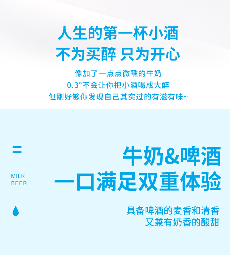 奶啤被称为“奶香槟”,是一种新型的酸味爽口、营养丰富的含有酒精的乳饮料。它的酒精度很低,酒体呈乳白色,具有馥郁的麦芽清香,略带碳酸气,泡沫丰富洁白,质感更加细腻润滑;同时,奶啤又具有乳饮料酸甜适口、营养丰富的特征。将奶啤归为“健康饮品”,是因为奶啤中含有异亮氨酸、赖氨酸、亮氨酸、缬氨酸、苯丙氨酸、蛋氨酸,维生素B1、B2、B6,生物素、叶酸和蛋白质等丰富的营养成分。