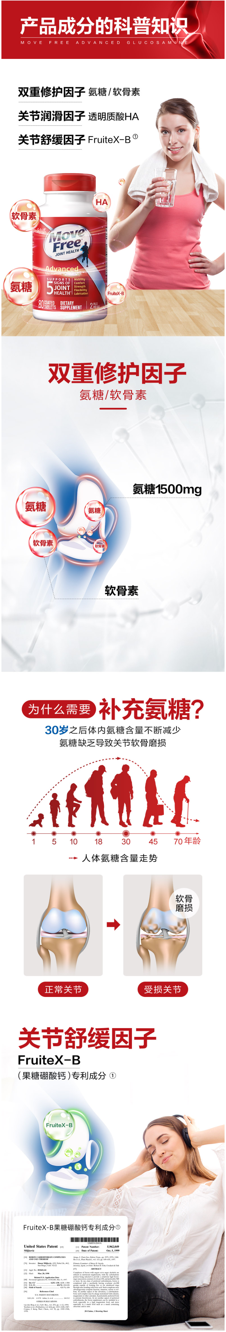 Move Free维骨力,是美国关节保健品市场上的第二大品牌,母品牌Schiff有近80年历史。Move Free最大的特点,是针对骨关节保健盲区“软骨”进行营养补充,核心营养素是“氨基葡萄糖”,也叫氨糖,美国有专门的医疗机构论证过氨糖的有效性。
