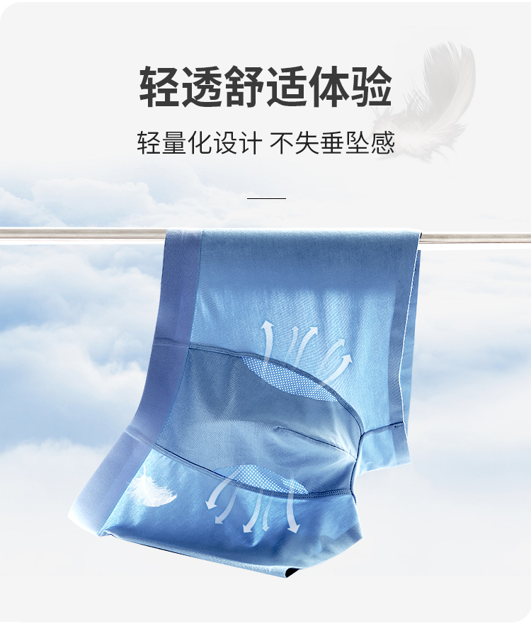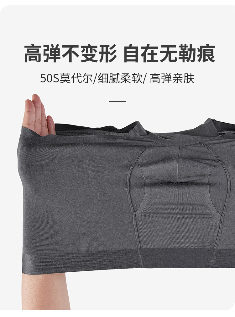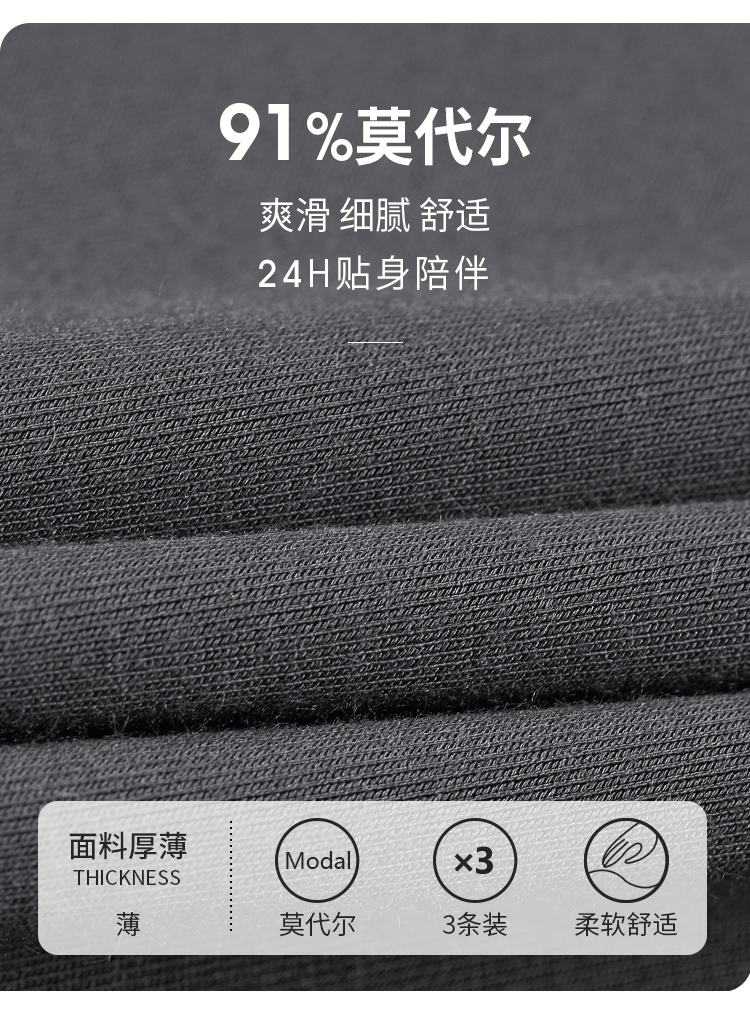 和纯棉面料相比,莫代尔手感更柔,吸湿更快更干爽,连续穿几天也没有棉质内裤松懈。莫代尔面料要混入氨纶弹力纤维,拥有弹力贴身的穿着感,又不会像尼龙或聚酯纤维有明显