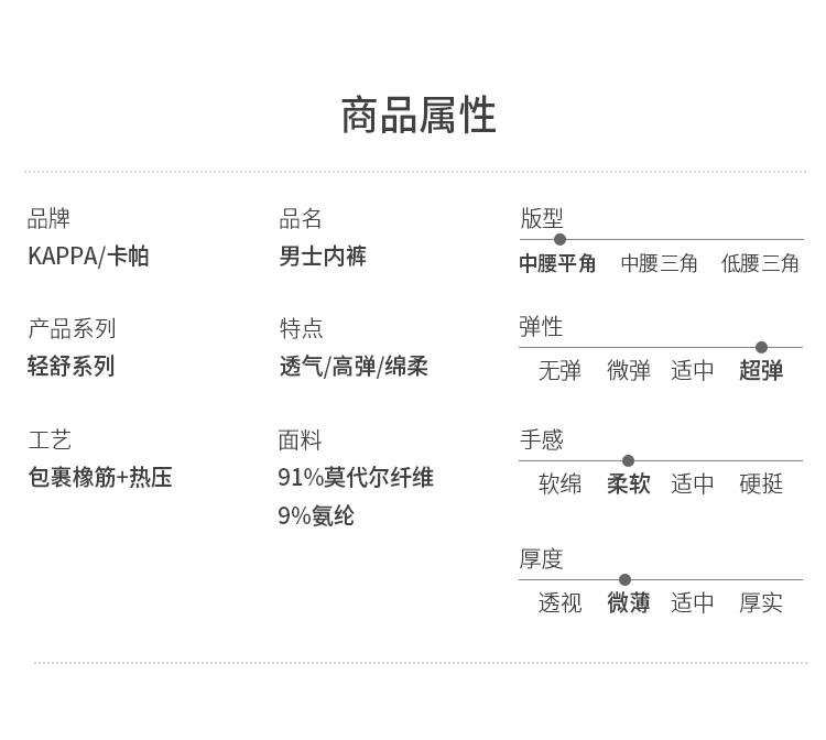 天猫kappa内衣旗舰店59元,可领10元优惠券,实付49元到手,这款Kappa男士莫代尔内裤,50支莫代尔面料,触感细腻爽滑,融入9%氨纶增加弹力,高弹不变形,穿着舒适不勒,内档抗菌,呵护健康。一片式无侧缝裁剪,更少的缝合线减少摩擦,U凸囊袋拼接网眼布,增加透气性,保障重要部位干爽舒适;精致脚口,贴合不易卷边,久穿不松垮。