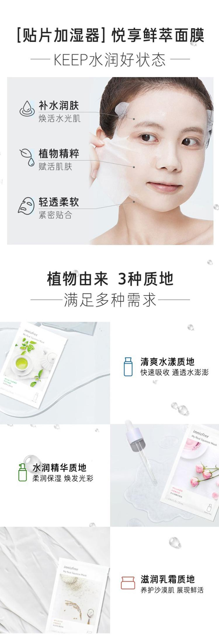 这款悦诗风吟 innisfree 悦享鲜萃补水面膜,是人气爆款,富含水分和植物精粹,不挑肤质,全家可用。