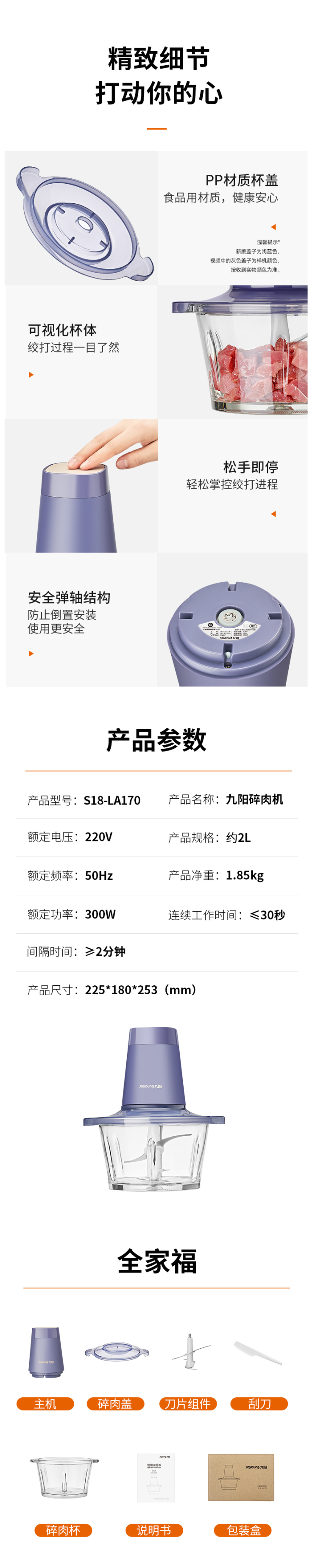 这款九阳S18-LA170 绞肉机质量口碑都非常好。月销量2万+,累计5.7万4.9好评。可用来搅肉、绞肉、做酱、碎菜、打蛋等。编辑家也备了一个,主要是包饺子做馅料时真是太方便了。一次最大绞肉量可2斤左右,1斤猪肉仅需8秒搅碎。