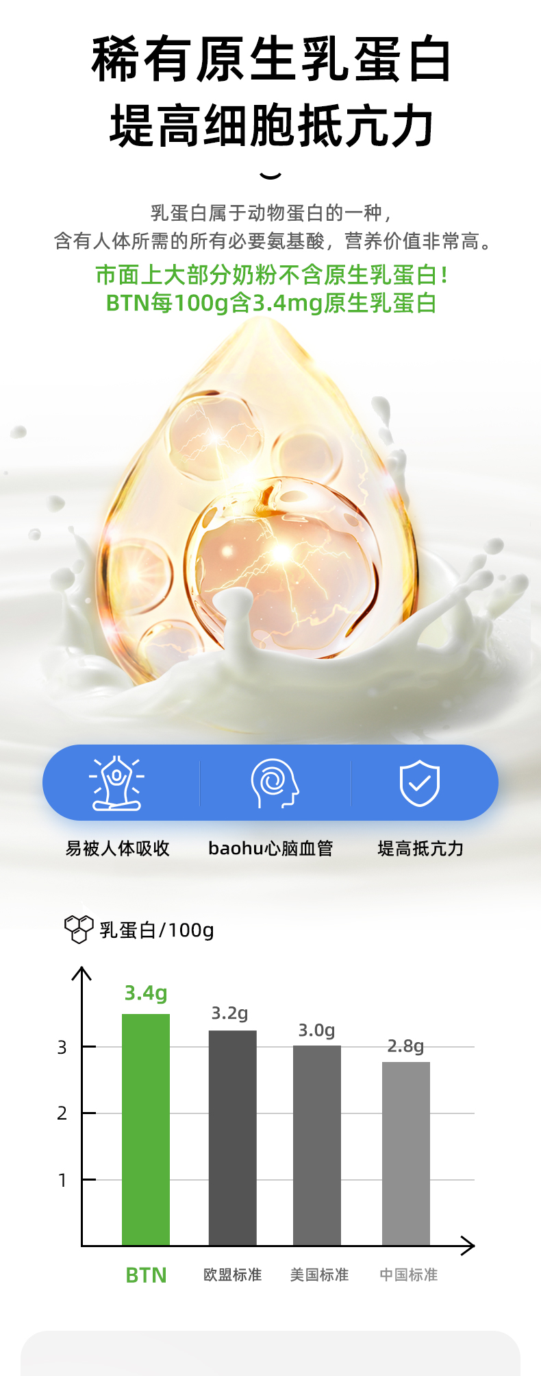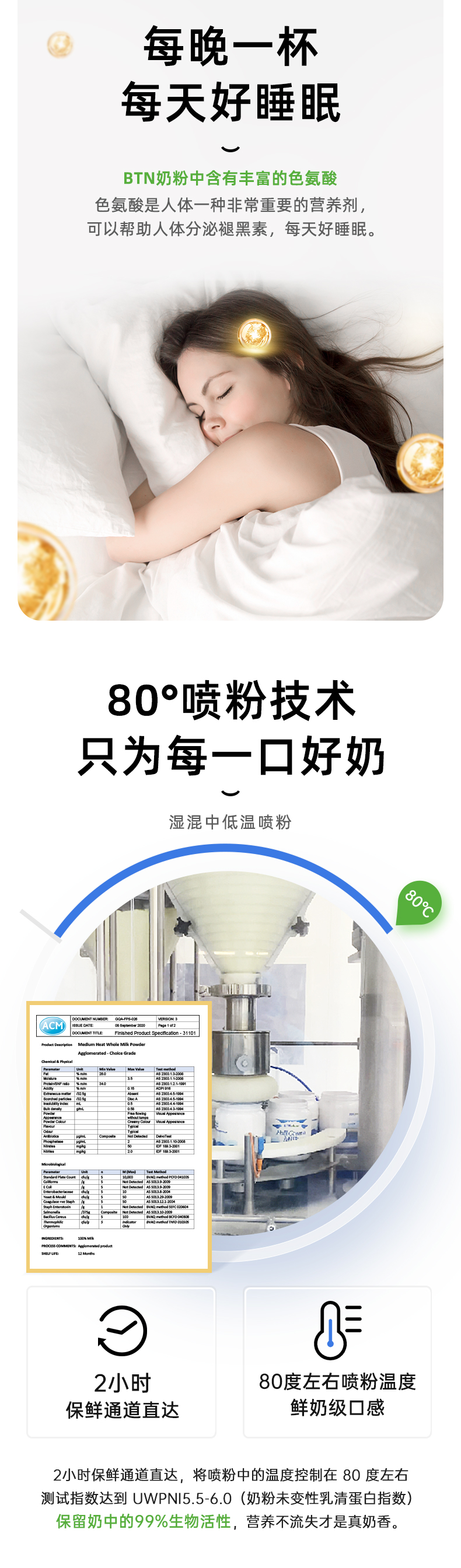 这款澳洲 BTNature高钙奶粉,在澳洲南纬30°-50°的拥有自家的黄金牧场,臻选纯种荷斯坦乳牛,采用全球领先的湿混工艺,也就是在新鲜奶源还是液体状态下,加入各种营养元素进行均匀混合后,将直接进行鲜奶低温喷雾干燥、喷粉,全程无菌化。