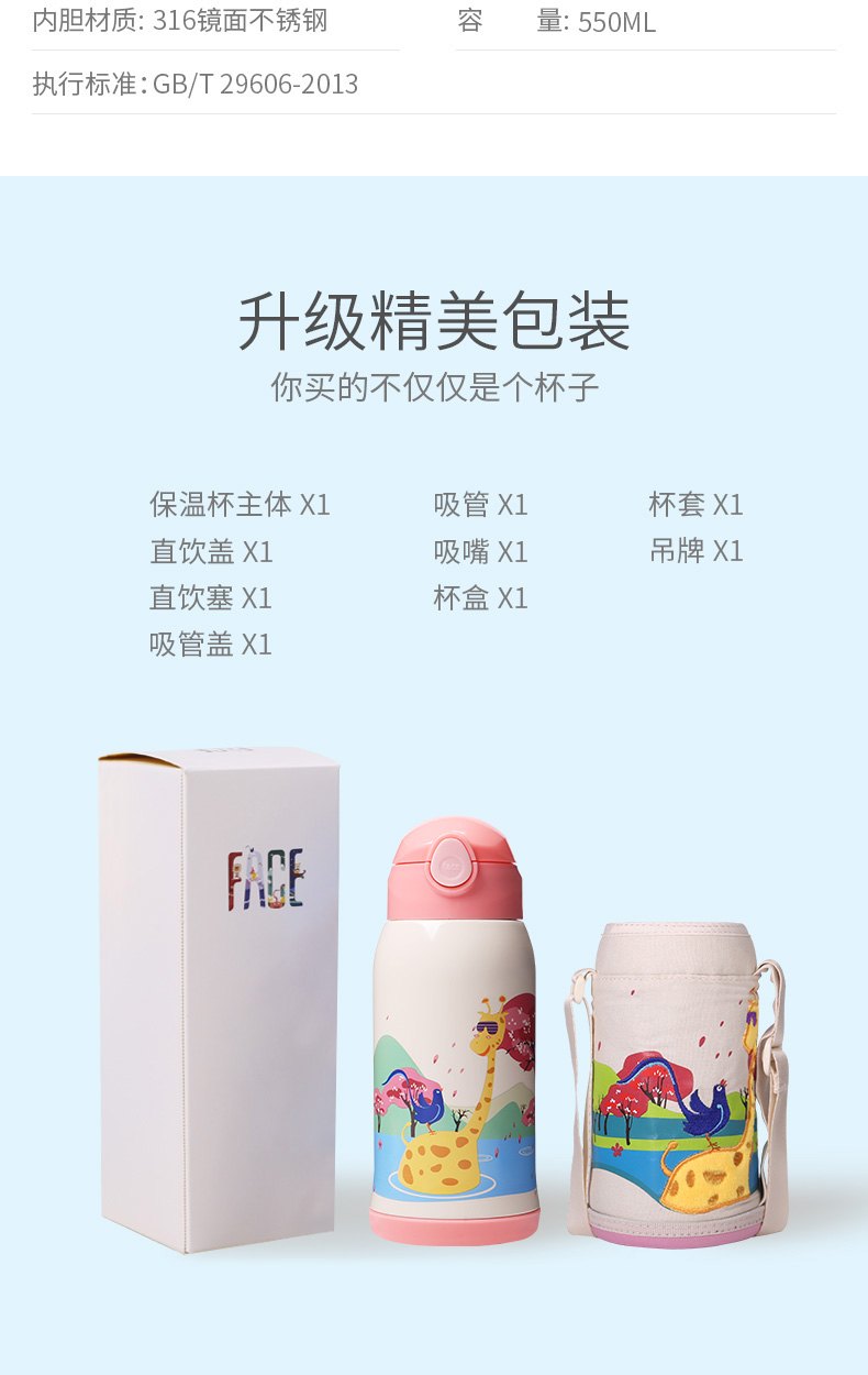 天猫face旗舰店119元,可领60元优惠券,实付59元到手,3色可选。这款Face 18/10 316 医用级不锈钢 儿童保温杯,一杯双盖,直饮杯盖和吸管杯盖,容量是550ml。