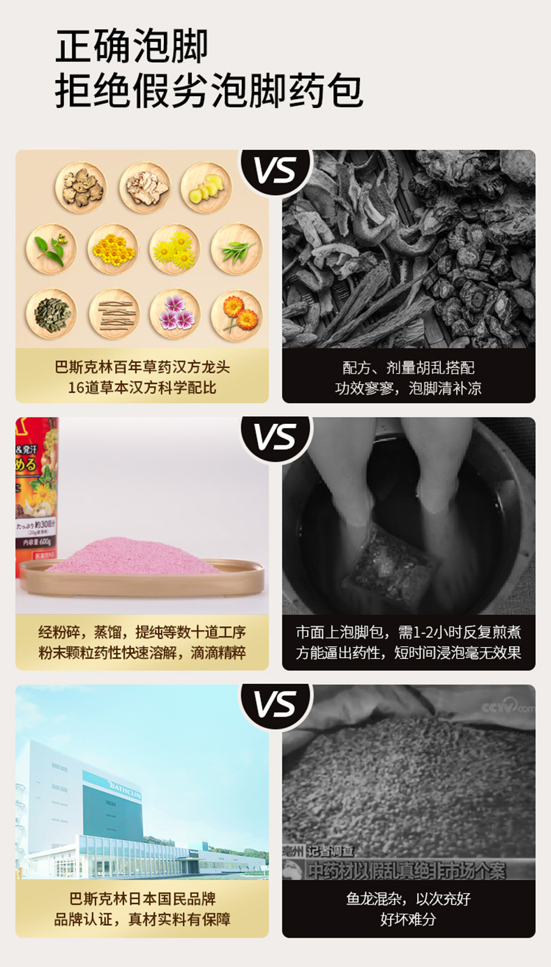 这款巴斯克林 生姜泡脚粉,日本进口,将16种天然中草药活性成分,与日本独有的天然温泉矿物盐混合,并加入有机认证荷荷巴油,既保证药用疗效又能保护皮肤不受草药刺激影响,两全其美。不添加人工色素、防腐剂、添加剂,对皮肤无刺激。