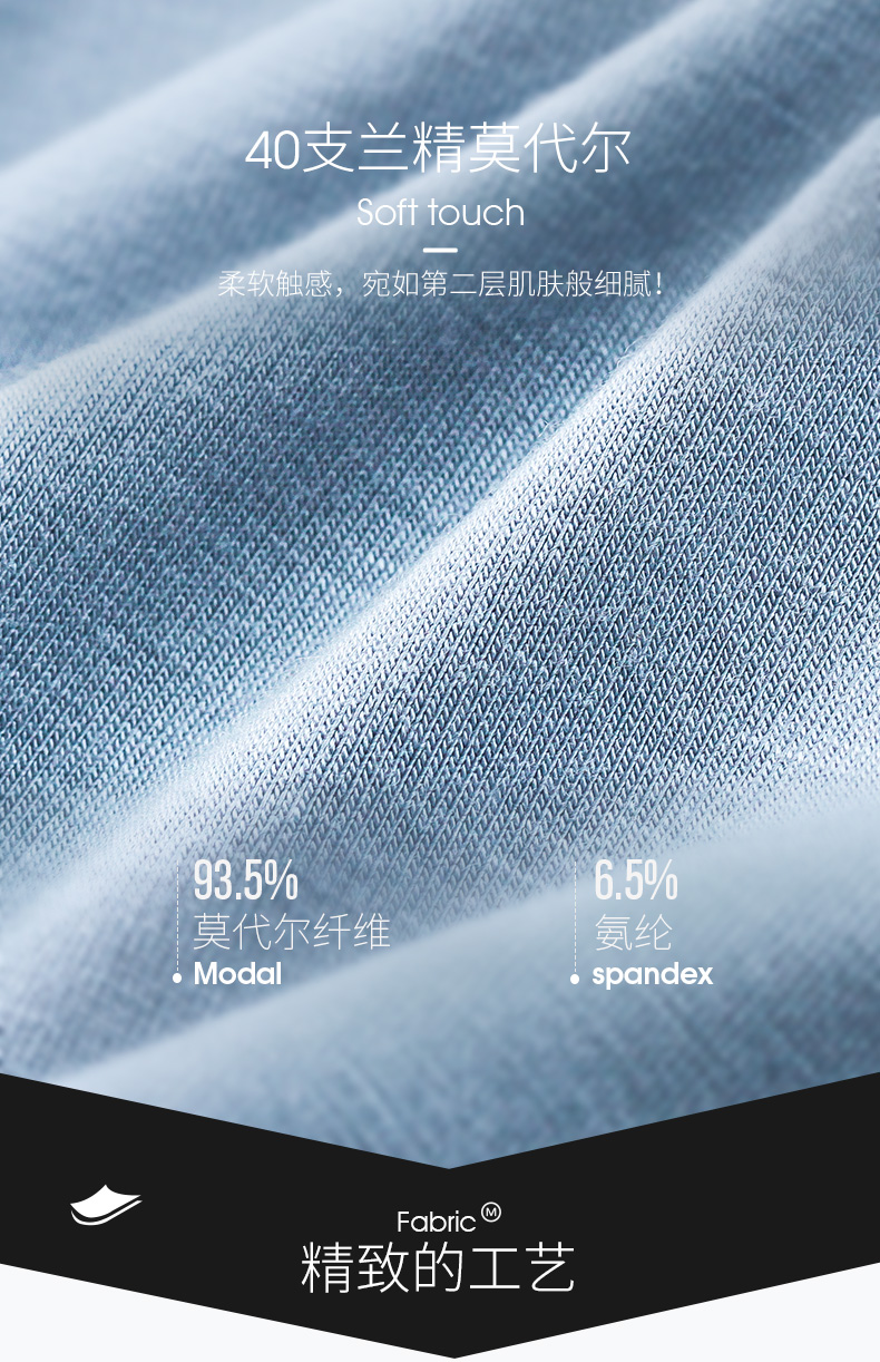 天猫猫人服饰旗舰店59.9元,可领30元优惠券,实付29.9元到手,第一款这个价格。莫代尔材质内裤和纯棉面料相比,莫代尔手感更柔,吸湿更快更干爽,连续穿几天也没有棉质内裤松懈。莫代尔面料要混入氨纶弹力纤维,拥有弹力贴身的穿着感,又不会像尼龙或聚酯纤维有明显的紧绷感。