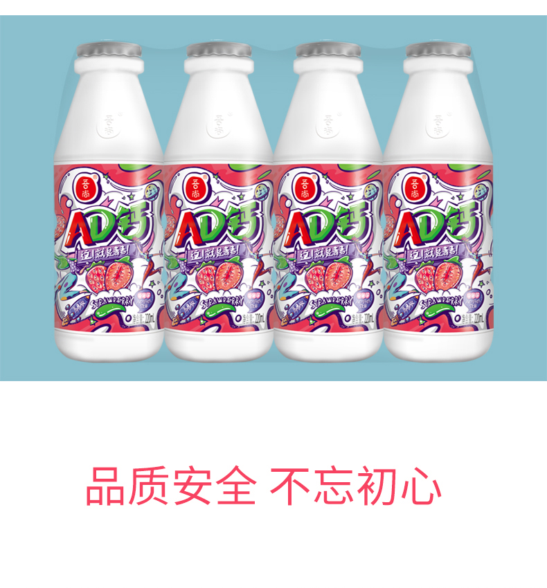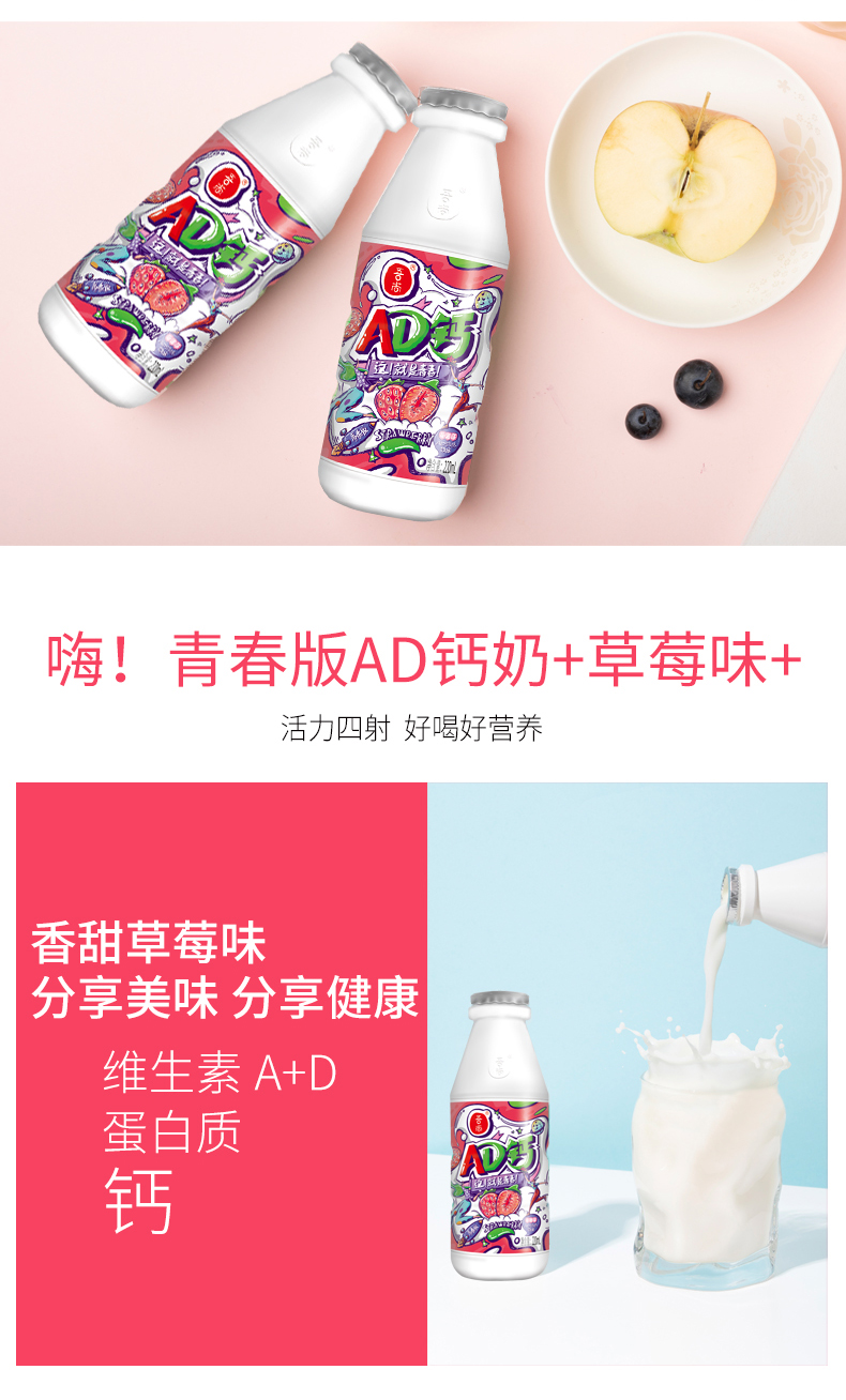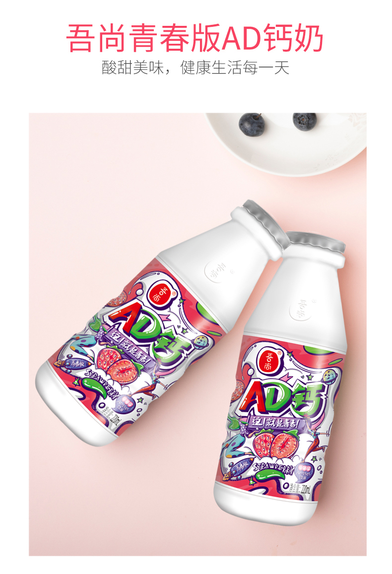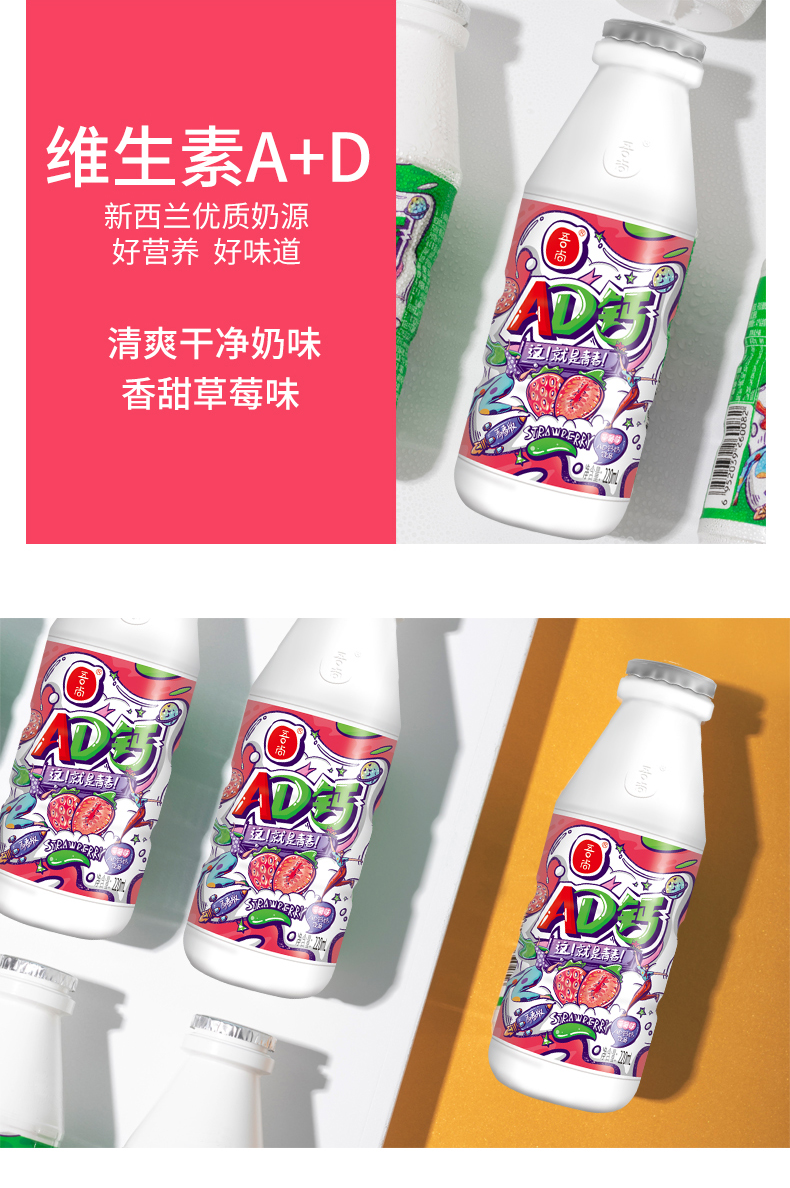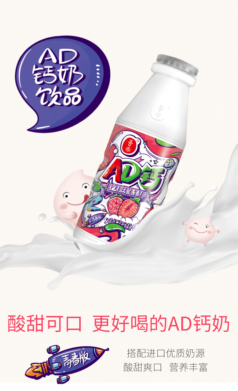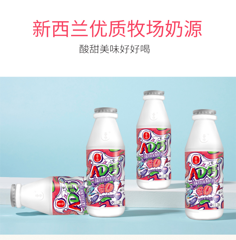 天猫超市次日可达。AD钙奶是娃哈哈旗下的饮品,这款吾尚青春版,采用新西兰优质牧场奶源为基础,辅以维生素A和维生素D等多种营养元素,酸甜可口,好喝又营养。规格:220ml*20瓶 礼盒装