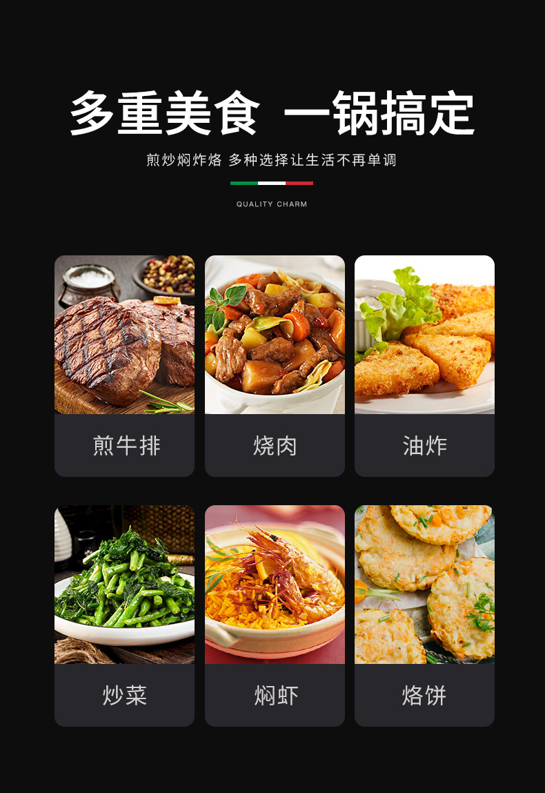优质复合锅底,燃气灶、电磁炉、电陶炉、电热炉都能使用。电木防烫手柄,握感舒适,防烫隔热;在锅手柄处使用了红绿聪明感温点专利技术,通过颜色变化控温。