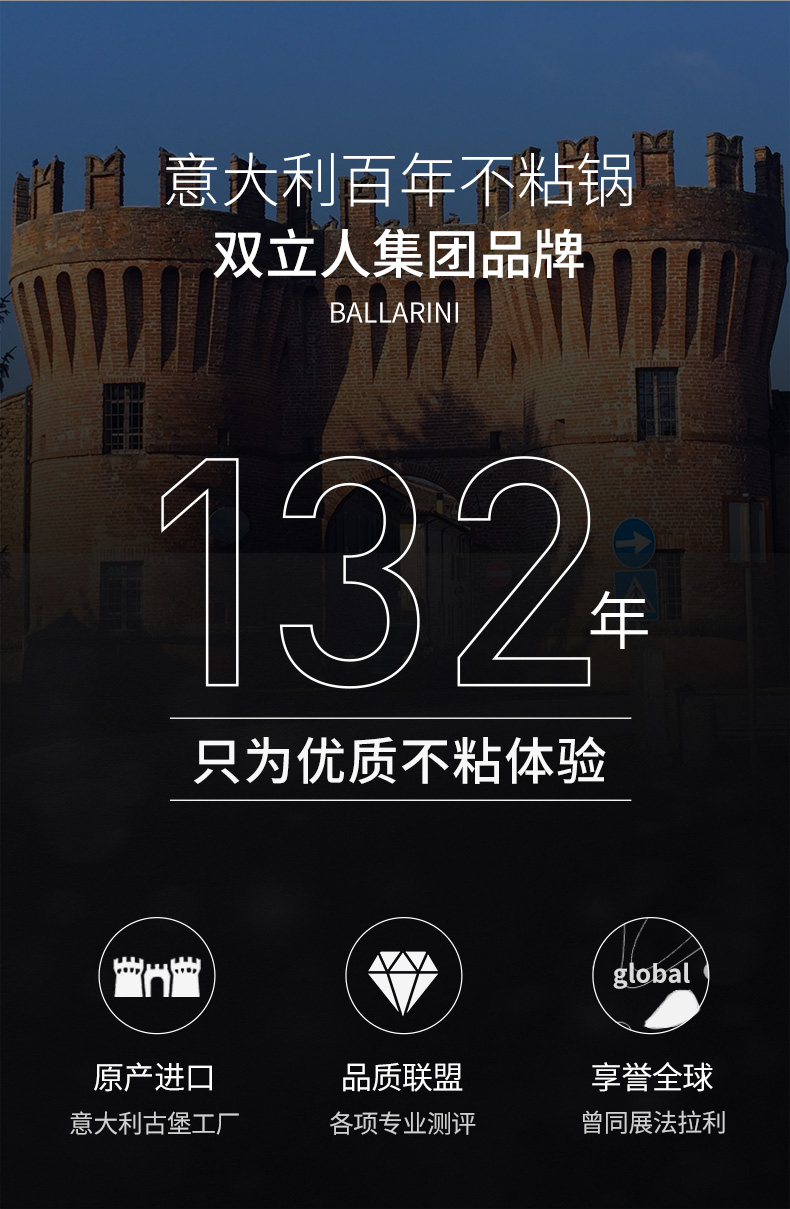 巴拉利尼起源于1889年的意大利,目前是双立人旗下品牌,所有的锅具均坚持只在意大利制造,12年曾获得testmagazin(国际知名的一家测评网站,月费10欧元)的最推荐锅具品牌。