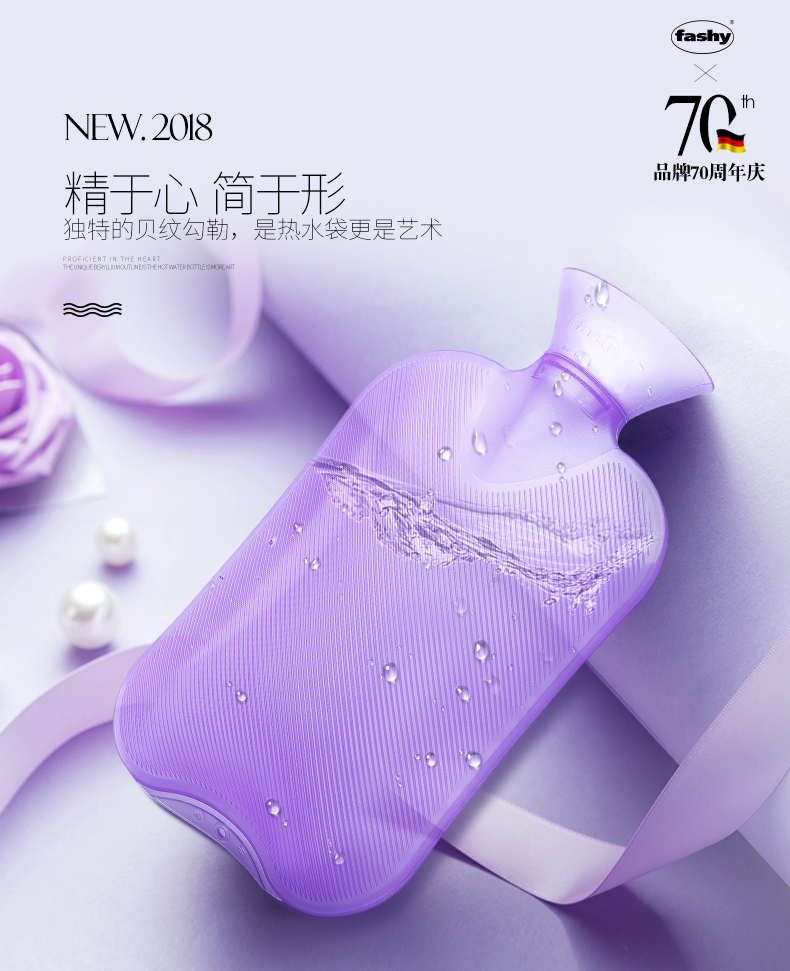 费许“Fashy”是德国的著名保健品品牌「官网地址」,热水袋,热敷包等是旗下明星产品,费许的热水袋都是德国设计德国生产,使用德国TUV安全认证一体成型高密度PVC材质,抗压能力可通过汽车碾压测试,老化速度慢,放在被 窝中缓慢发热可持续7-12小时,晚上放在被 窝中早上水袋还是热的。费许的水袋也可装冷水,在夏季使用。