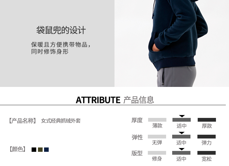 在款式上,这款抓绒是连帽卫衣款,外穿的话比较好看,保暖也比普通卫衣强很多。袖口和下摆都有罗纹弹力设计,预计保暖效果和羊绒差不多,比羊绒便宜,保养省心。无论是内穿还是直接外穿都没问题。