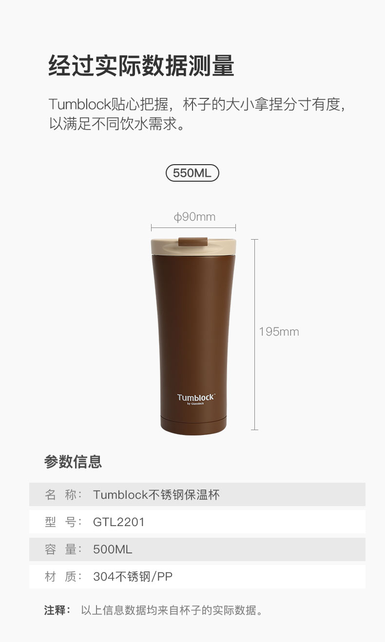 天猫glasslock旗舰店109元,可领70元优惠券,实付39元到手,Tumblock保温杯,简约咖啡色,安全GB4806标准304不锈钢,一键开盖单手开合不费力,双层真空,保温持久,不易腐蚀结实耐用,杯口采用食品级硅胶圈,360度不漏水,车载更安全!
