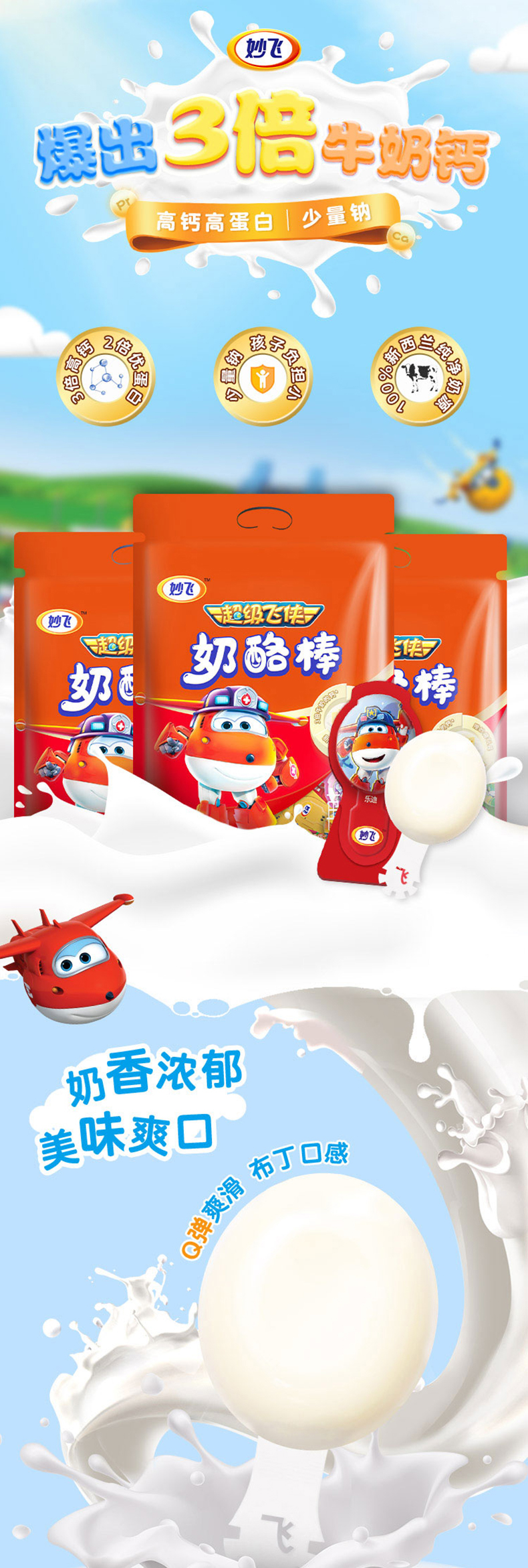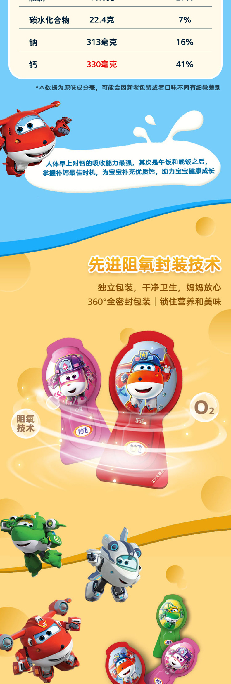 精选进口奶源,每支含68mg钙含量,约是牛乳的3倍,每百克蛋白质含量5.4g,约是普通牛奶的2倍,奶香浓郁,入口细腻香甜,营养又美味,孩子超喜欢。采用欧洲进口原装内膜封装保鲜,奶酪棒与外壳分开封装使用更安心。