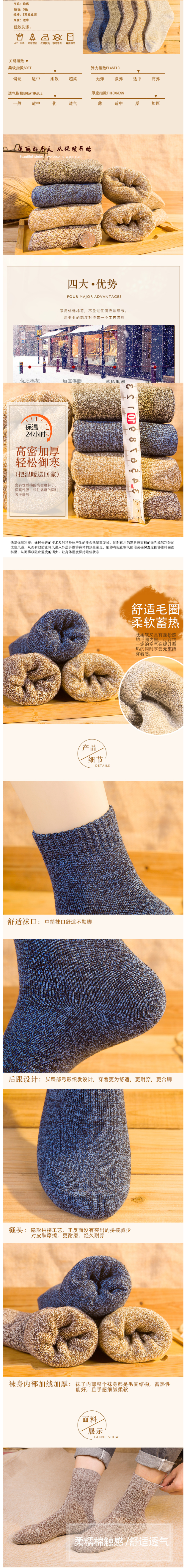 高密度的优质棉,保暖性强,锁住温度的同时,吸汗透气;里层是既柔软又具蓬松感的毛圈内里,亲肤性非常好,同时又蓄热保暖;脚踝部弓形织发设计,耐穿合脚。领券链接点此