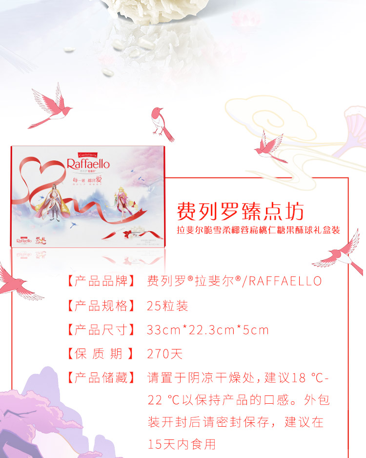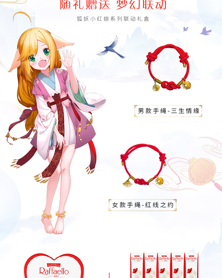 天猫费列罗官方旗舰店115元,可领50元优惠券,实付65元到手,这款是费列罗和狐妖小红娘的联名款,定制礼盒包装,含拉斐尔巧克力25粒+红绳手环1套。