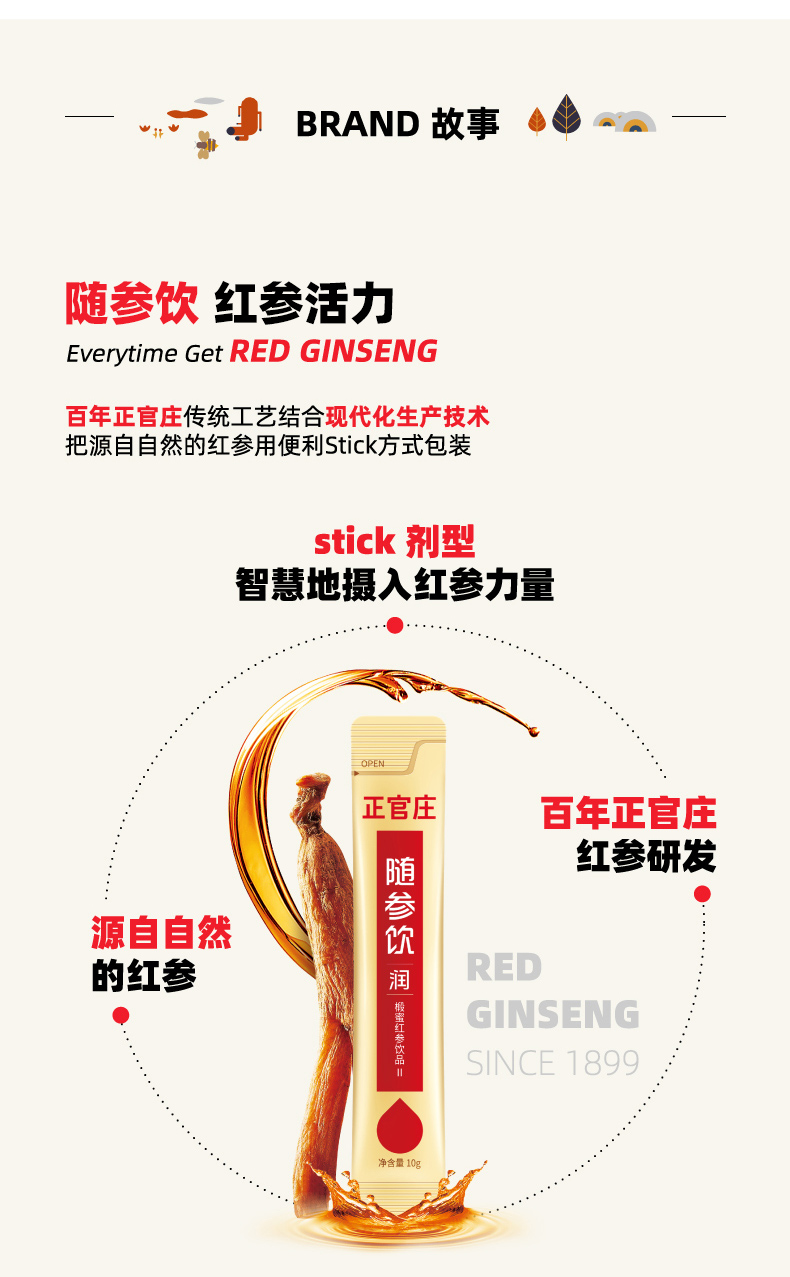 正官庄创建于1899年,是韩国百年历史传统品牌,属于韩国国礼级品牌。在众多韩剧、广告、综艺中,演员们饮用红参精everytime的场景播出后,红参精everytime便受到广大观众的追捧。在上市后一年的时间里销售额就突破了100亿韩元,购买普通红参产品的20至30岁年轻人占总人数的22%,而购买“红参精everytime”的年轻人比例则超过了33%。