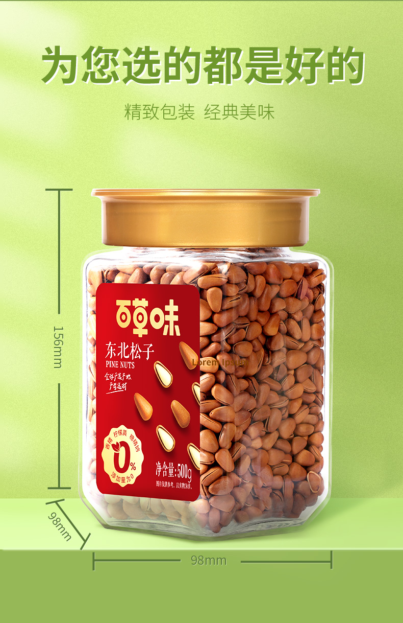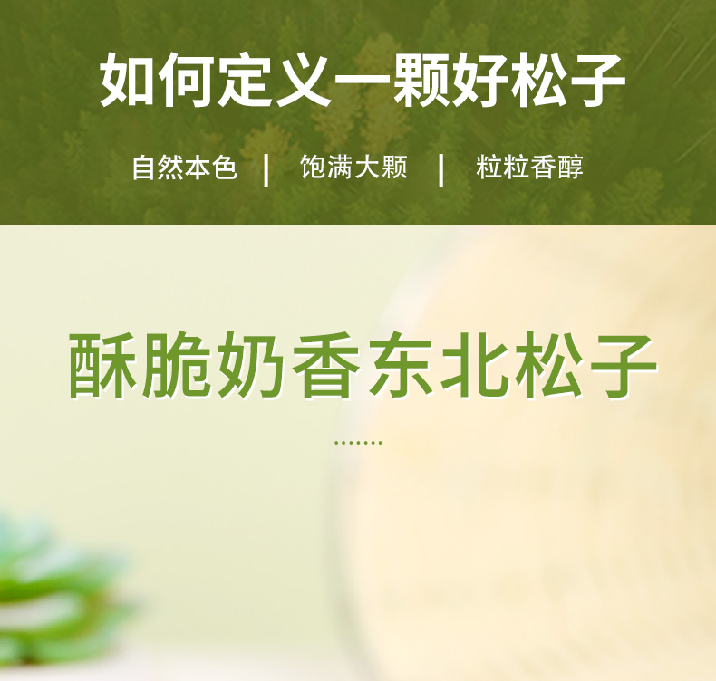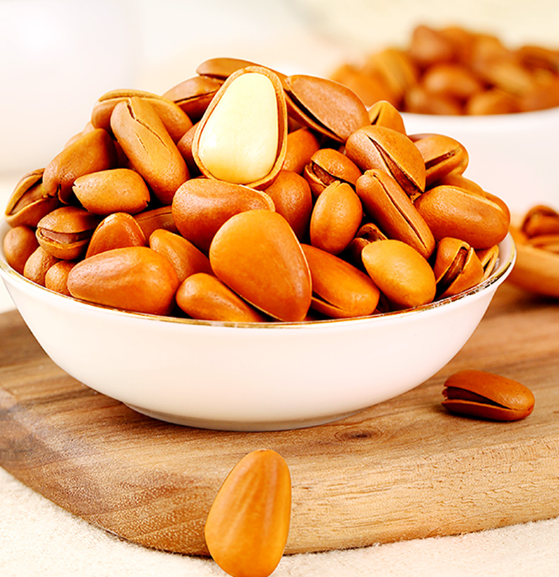 除了富含脂肪、蛋白质、碳水化合物、维生素、不饱和脂肪酸等日常人体必需的多种营养之外,还是一味重要中药,经常食用不但能健身心、润皮肤还能延年益寿。东北松子肉粒大而饱满,味鲜甜,食、疗价值都很高,故又被誉为"长生果"、"长寿果",并以优质的营养价值深受各类消费人群的喜爱。