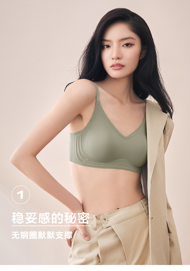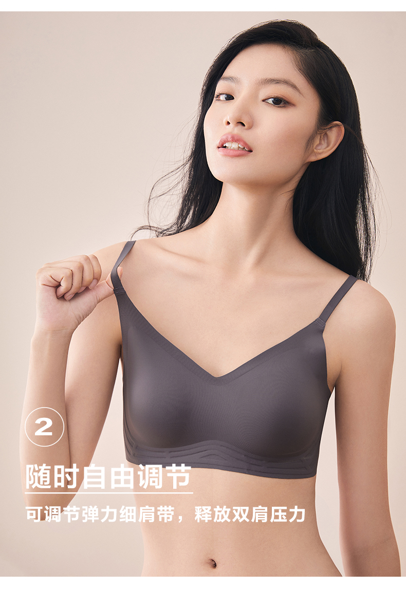 这款DAPU 大朴 无钢圈果冻条菱形透气孔吊带文胸,采用亲肤的舒适弹力棉氨纶面料,细腻柔软,环保染色,安全放心。执行婴幼儿亦可接触的纺织品A类安全标准,不含芳香胺和甲醛。活性印染工艺,安全环保。无感托技术,W型果冻条支撑,立体廓形感,衬托优美曲线,搭配可拆卸3D仿生按摩乳绵杯胸垫,贴合不空杯,树脂点胶无缝贴合技术,减少摩擦不磨不扎,后背菱形透气孔设计,尽量避免透露痕迹,面料微弹,肩带可调节但不可取下。