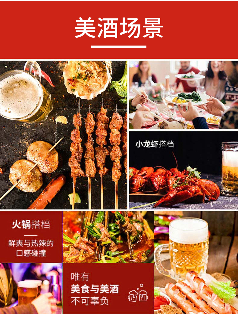 酒液浑浊粘稠,泡沫丰富,细腻如牛奶,绵绵持久,不添加CO2,喝了不涨肚。原麦汁浓度 13°P、酒精度≥4.7%VOL。未经过滤保留了对人体有益的活性酵素,喝完也不头疼。