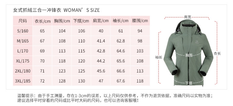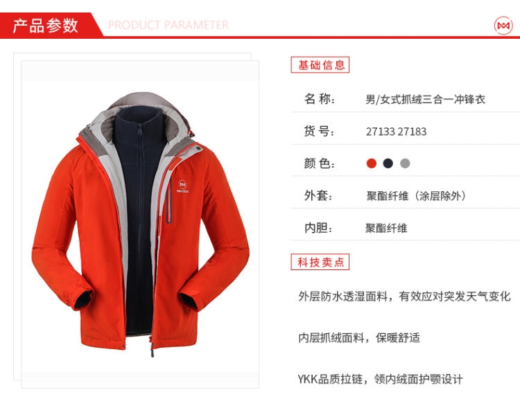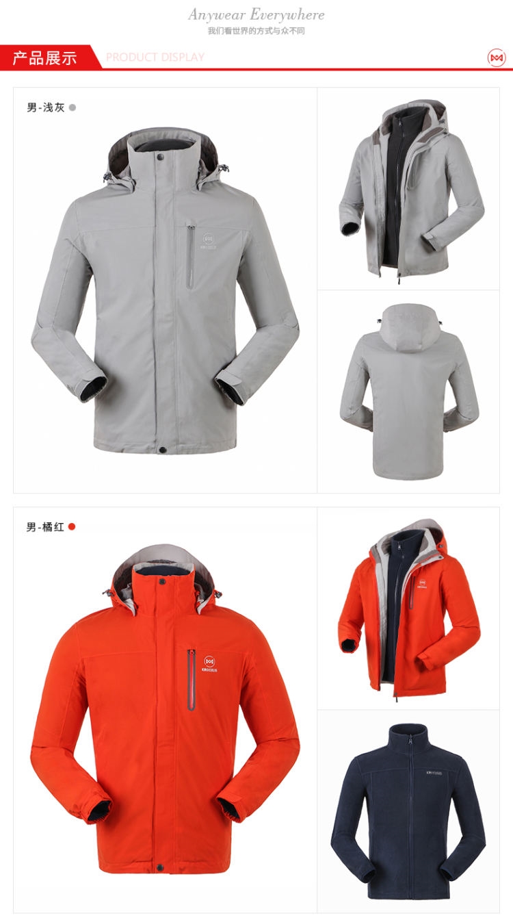所谓的三合一也叫两件套冲锋衣,其实是两件衣服,外层是具有防风防水功能的冲锋衣,带三合一系统,里面多出来一套拉链,可以和里层的抓绒(或棉服、羽绒服)拉在一起,这样能当成一件穿,同时具有(单穿内胆、单穿外层、两件一起穿)三种穿法。