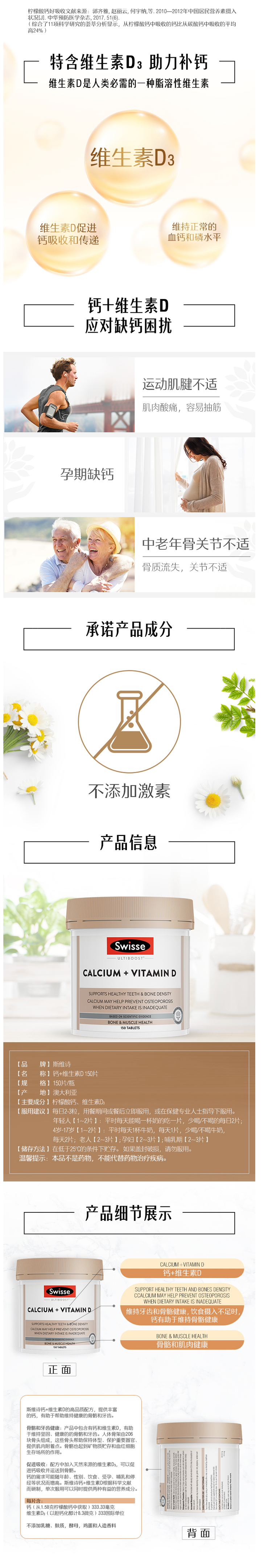 这款Swisse 维生素D柠檬酸钙片,澳洲进口, 可促进骨骼发育,预防骨质疏松,舒缓情绪,提高睡眠质量,缓解腰酸背痛和抽筋等症状;可预防和治疗高血压和心肌梗死。