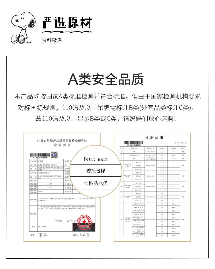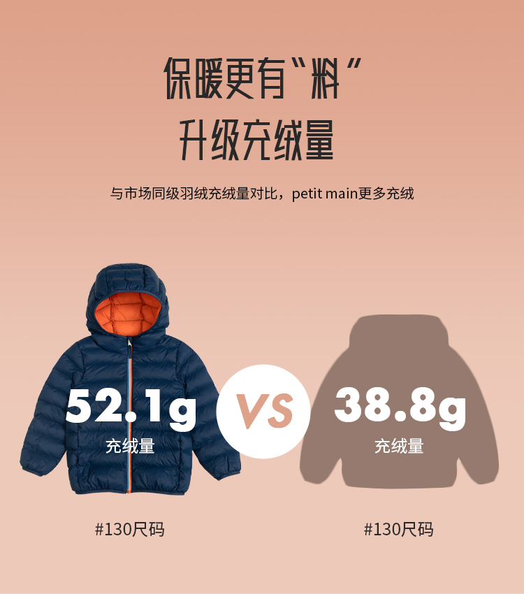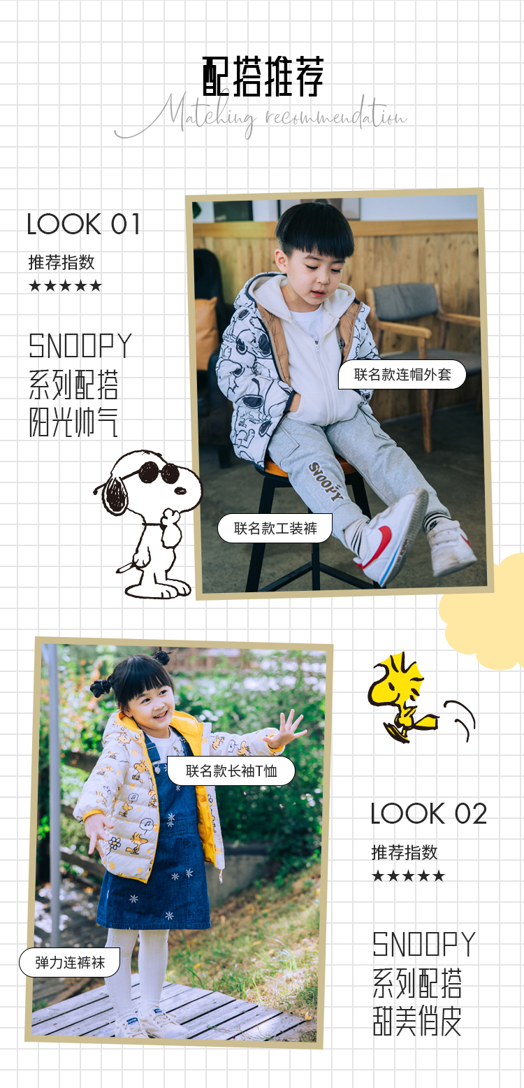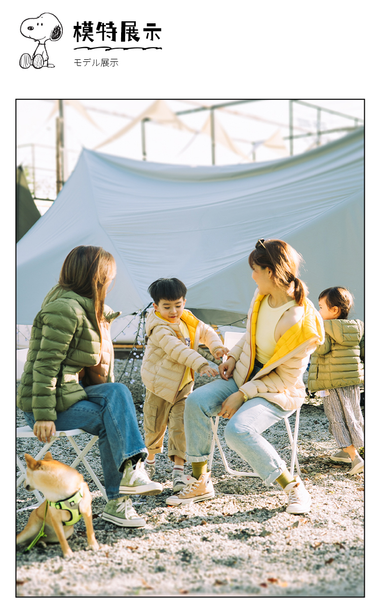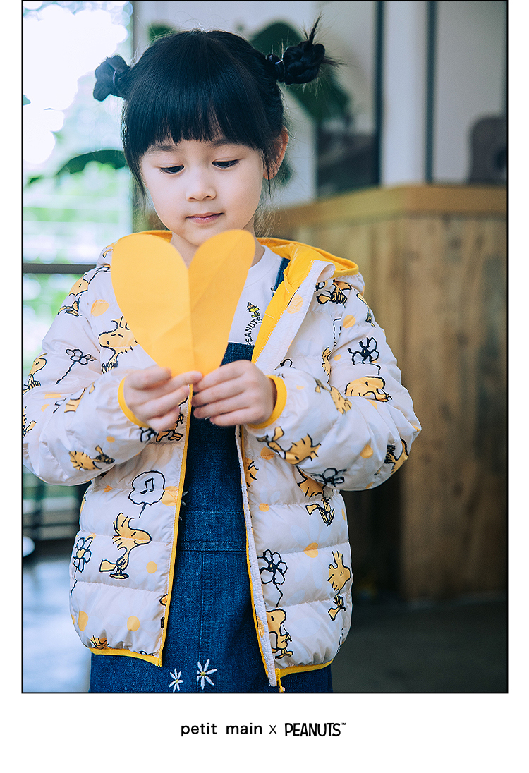 这款史努比联名款羽绒服,时尚涂鸦,充满童趣,甄选大绒朵90白鸭绒,外层480T高密度面料,防风防泼水,专业防钻绒技术,分格充绒,充绒均匀,充绒量相,比普通款赠加了34%由原来38.8g增加到52.1g,保暖性更好,自由防风连帽和高领,能有效呵护头部、颈部,品质拉链长久拉合顺滑不卡顿品。