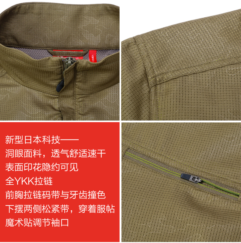 这款地球科学家速干透气印花夹克,使用新型日本科技洞眼面料,透气舒适,同时具有速干功能。表面印花隐约可见,下摆两侧采用松紧带,穿着更服帖,细节点缀荧光色,点亮了整款设计,全YKK拉链。