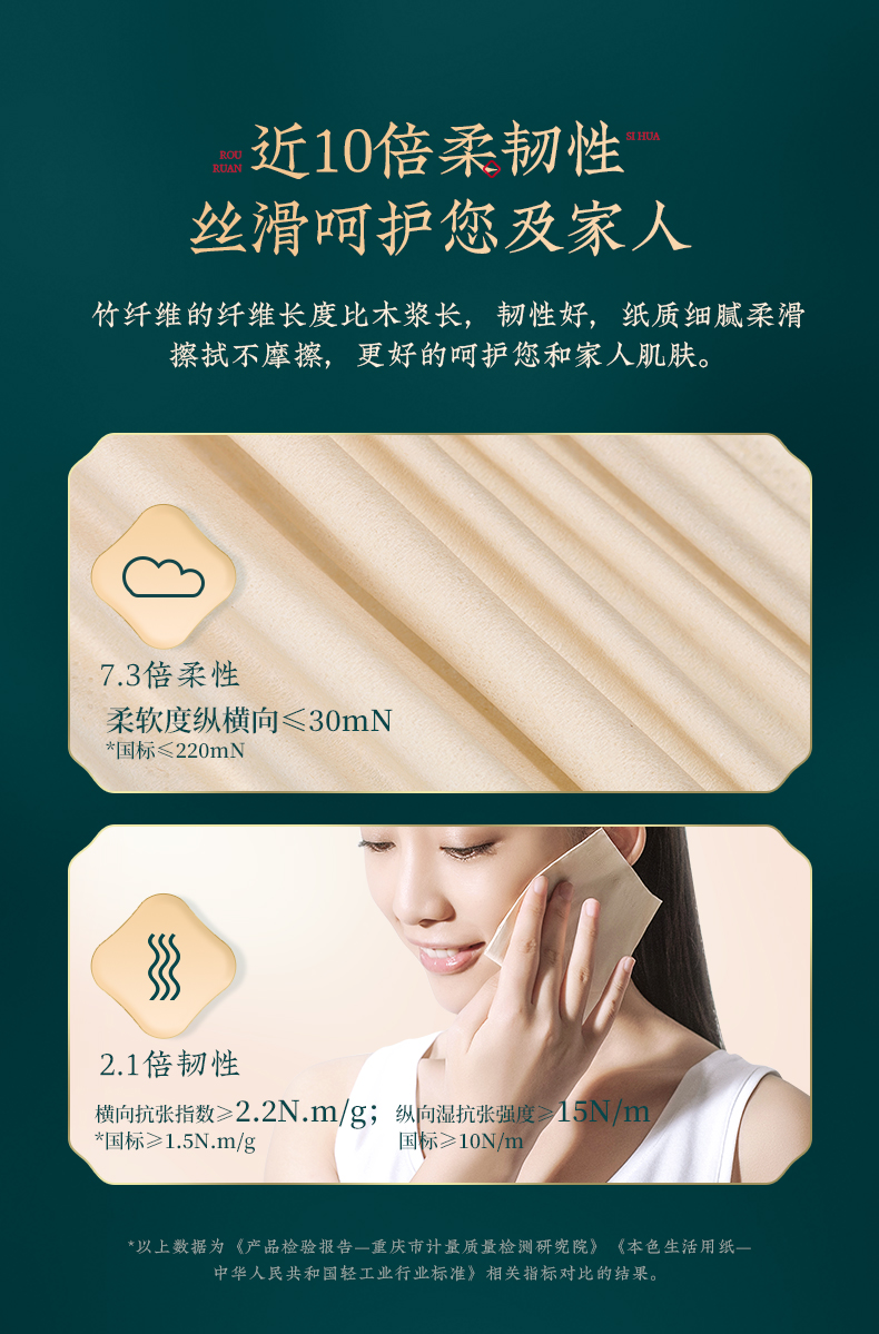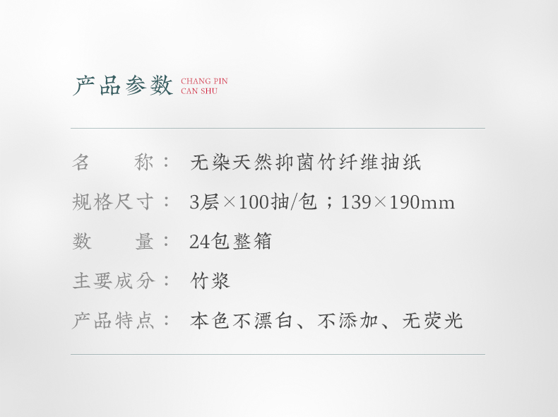 这款抽纸无漂白,无有害添加,抽纸可直接接触食品,内部添加天然提取的竹锟精华,抑菌率高达99%,具有多孔纤维,可以瞬间吸收和蒸发水分,湿水后韧性更强,擦拭后不易松散,干湿两用,大小适中。