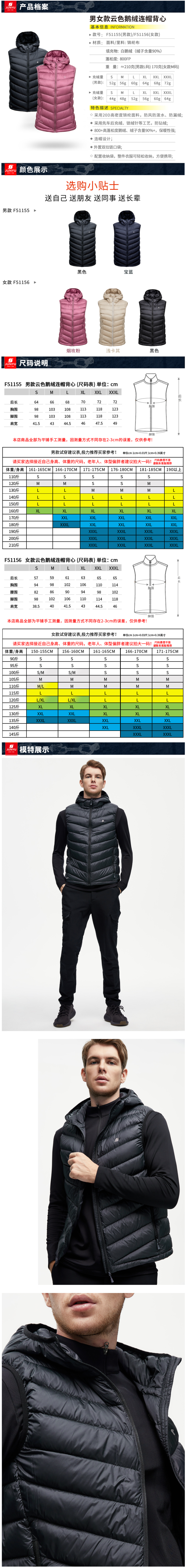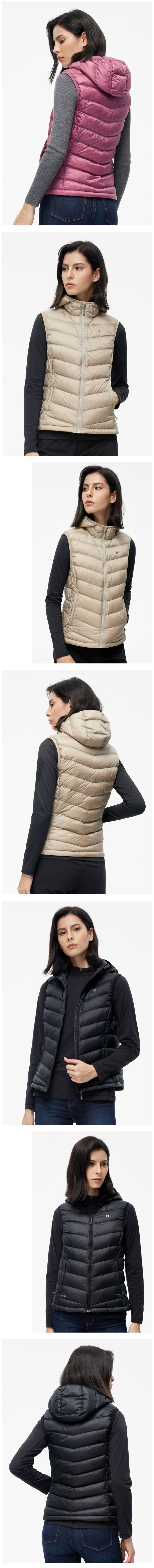 这款君羽云色立领羽绒马甲,是2021年的秋冬新品,外层是20D高密度锦纶面料,可防风防雨雪。内里填充了800蓬90%鹅绒,充绒量男L码56克/女M码48克,适合室内单穿,或者作为中间保暖层。