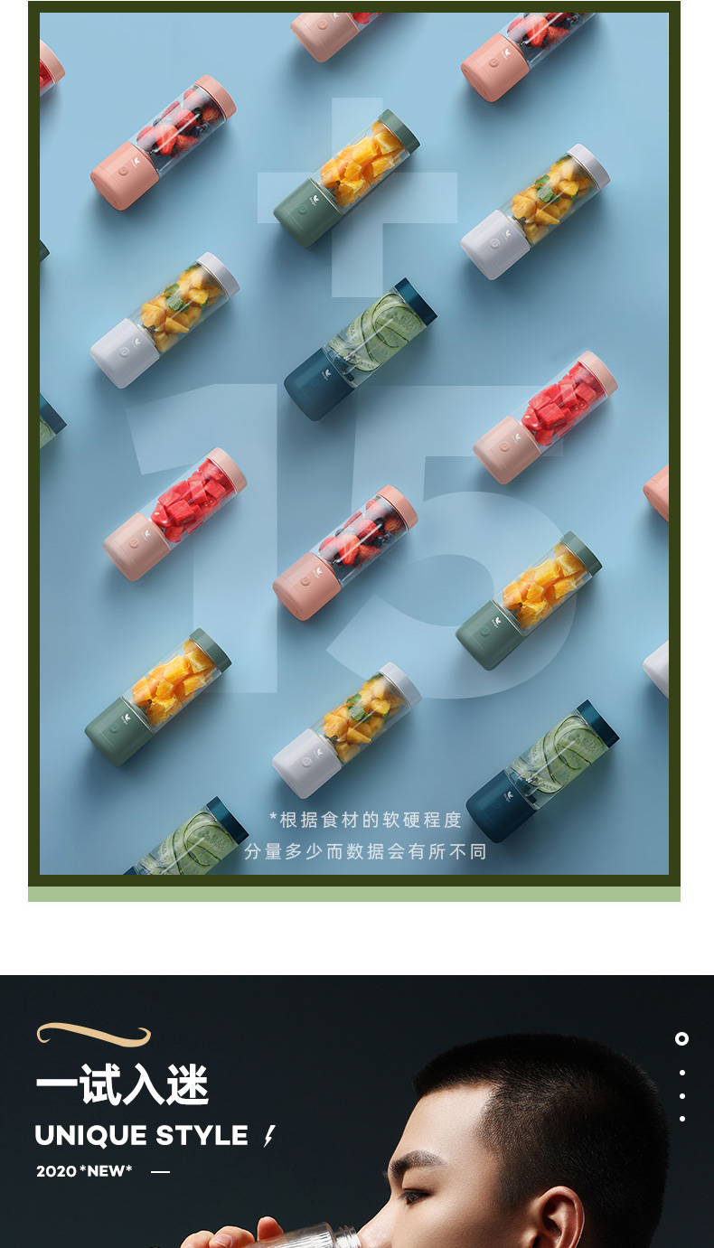 400毫升容量,能满足1-3人使用;USB充电设计,满电可使用15次左右,方便快捷,不用频繁充电。支持自动清洁,省心省力。普通水杯大小,方便外出携带。领券链接点此