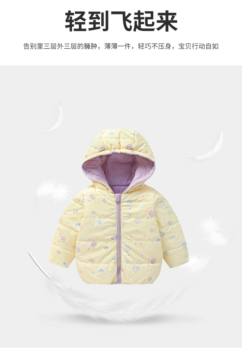 这款Goodbaby 好孩子 新款双面穿男女童短款轻薄羽绒服,甄选90%高标鸭绒,绒朵大,手感轻盈柔软,保暖隔热性高;精选高密度面料,微防水防钻绒;连帽设计,帽口橡筋收口,锁住温暖,防风效果更佳;隐形侧缝插袋 设计,美观实用。正反两穿,买一件相当于买两件哟。
