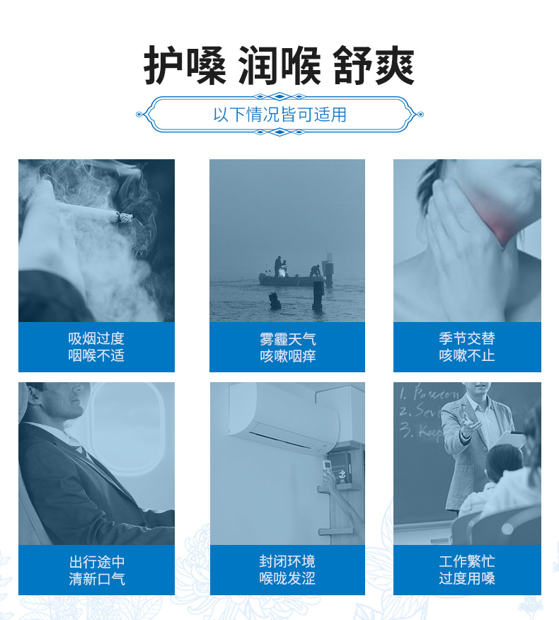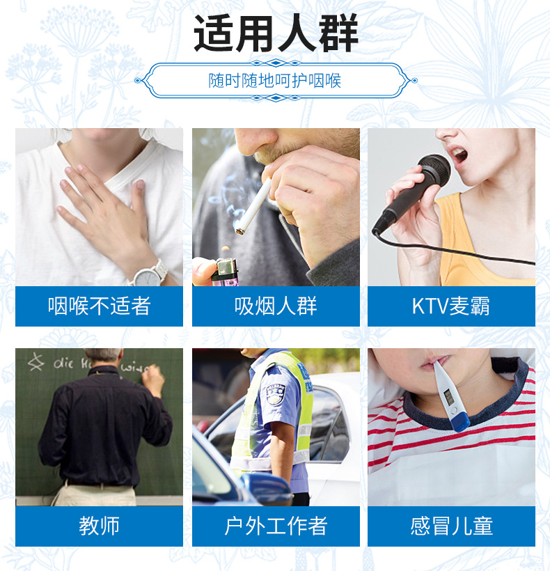 龙角散对于感冒引起的喉咙肿痛及吸烟过多导致的嗓子不适,都有显著缓和作用,适用于咽喉不适者、吸烟人群、感冒儿童、教师、户外工作者、KTV麦霸等。