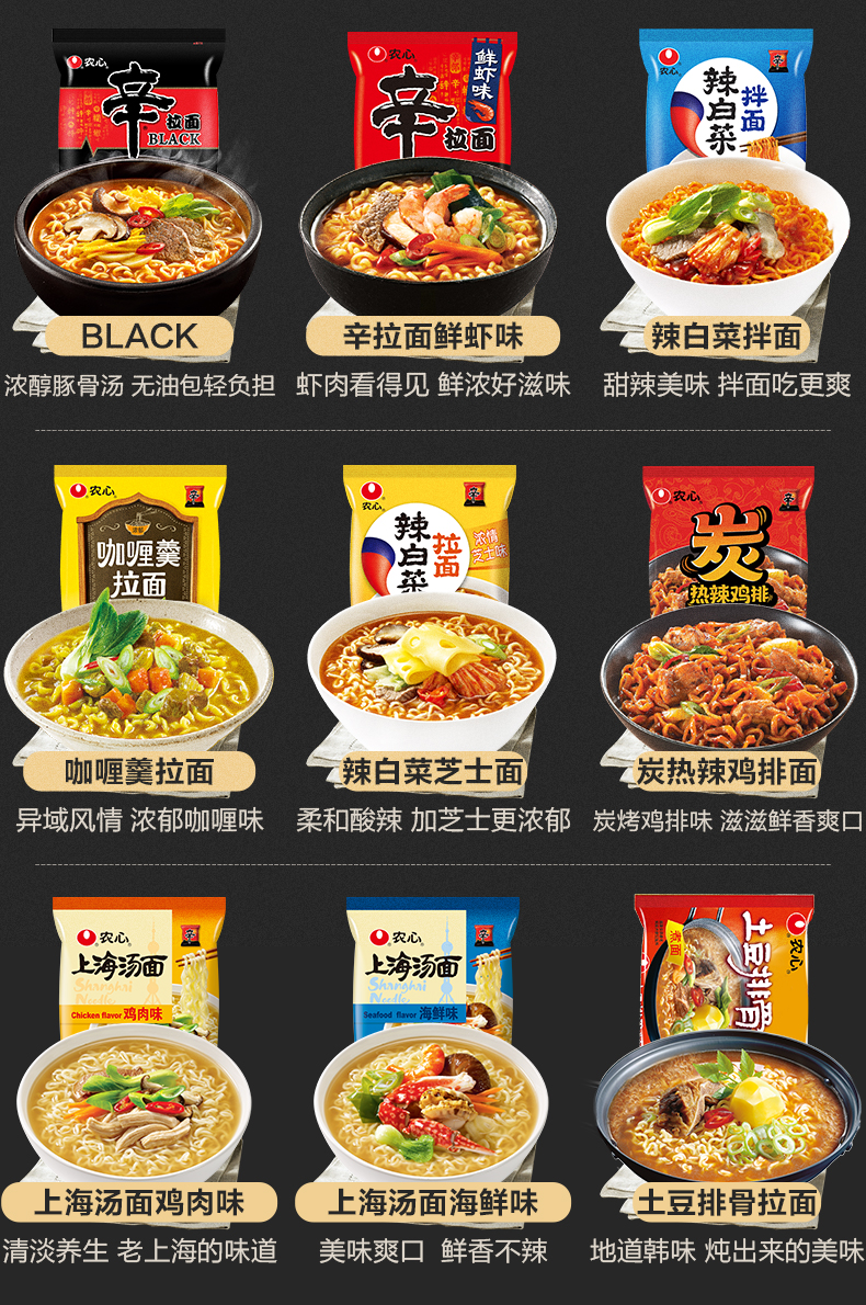 天猫农心官方旗舰店83.9元,可领24元优惠券,实付59.9元到手,15袋13味组合,内含:辛拉面、部队锅、炒辣白菜、石锅牛肉、乌龙、炭烧鸡排等,一次尽享超多美味,超划算价格,喜欢农心的不要错过。地道韩式拉面,部分拉面和国内的不同,没有油包,吃起来也就不那么油腻。