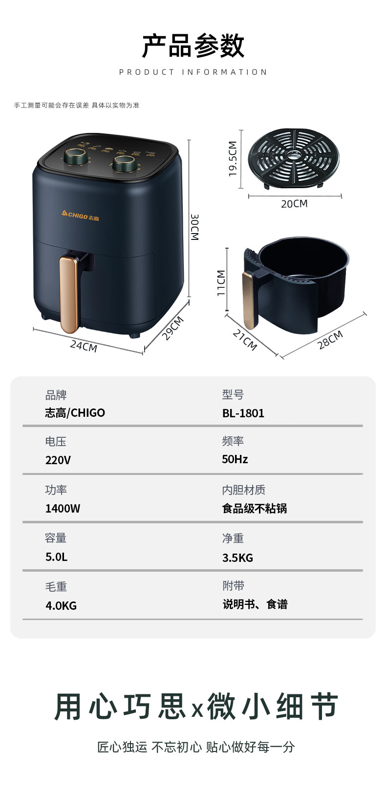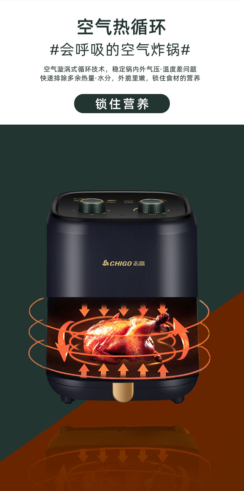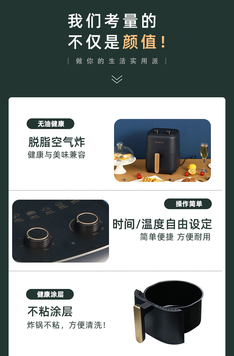 天猫志高立冠专卖店259元,可领90元优惠券,实付169元到手; 空气炸锅原理是通过空气循环加热锅内空气快速加热和脆化食物,代替传统油炸,过程中不加一滴油,还可逼出食物本身油脂,高温脱脂更健康。可用来制作薯条、鸡翅、大虾、排骨、肉串、地瓜、蛋挞等。