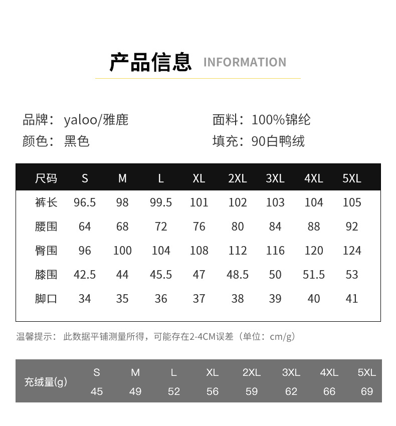 这款休闲羽绒裤,采用防风透气的尼龙纺面料,耐磨又抗皱,甄选高度蓬松90白鸭绒,多层锁绒技术分格充绒,充绒均匀,不结团不钻绒,充绒量45-69g,轻薄保暖,舒适合体版型,上身显瘦不臃肿,冬季御寒佳选~【退货运费险】