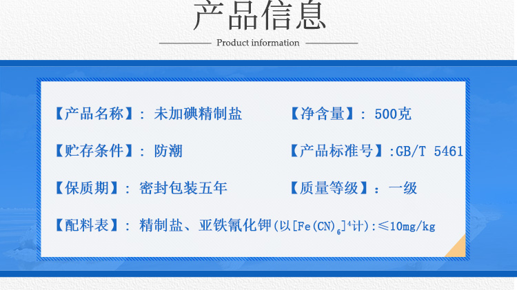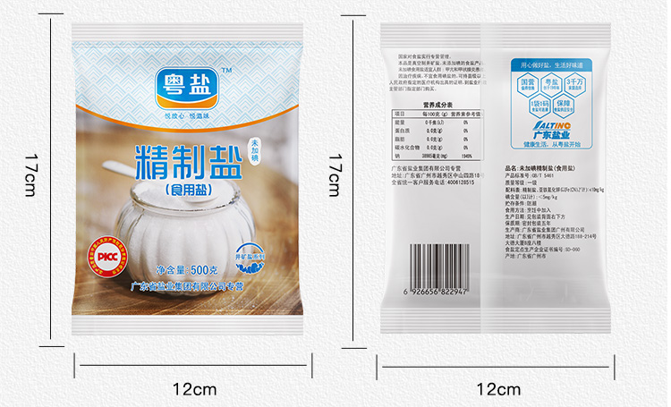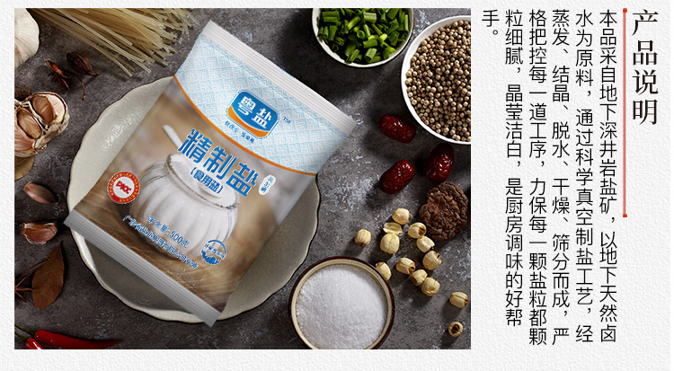 这款 粤盐 未加碘精制深井矿盐,生产日期是今年8月,采用深井岩盐矿,以地下天然卤水为原料,通过科学真空制盐工艺,经蒸发、结晶、脱水、干燥、筛分而成,每一粒盐分都细匀洁白,疏松易溶,规格是500g*5袋。
