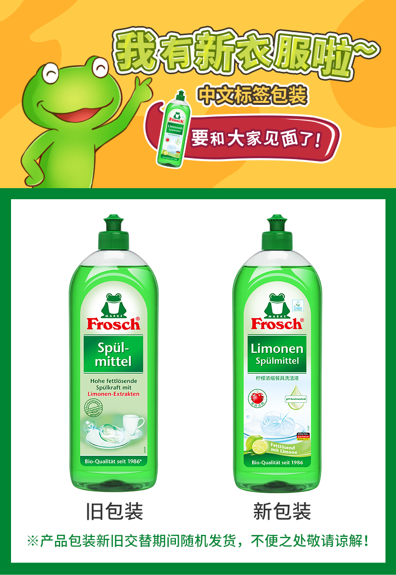 这款Frosch 柠檬浓缩洗洁精,萃取天然柠檬果皮精华,可迅速瓦解油污去异味、低泡浓缩强水溶性,轻松过水,碗具更洁净,产品高浓缩技术,不添加增稠剂,3-5ml可兑5L水,高效清洁的同时,保养洗济对象;瓶身可自然降解,环境零负担;使用之后,手感温润,拒绝干燥、紧绷甚至过敏反应。