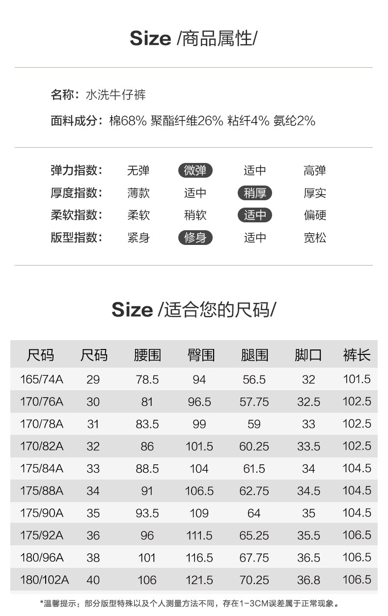 这款牛仔裤,四种纤维科学配比混纺而成(成分有68%棉+26% 聚酯+4%粘纤+2%氨纶),面料亲肤柔软,吸湿透气性好,上身不易褶皱,合体直筒版型,上身不臃肿,内外车线工整紧密,利落板正,YKK品质拉链,开合顺滑,裤身猫须磨白处理,穿着时尚,视觉更具层次感,日常休闲、上班通勤都适合穿。