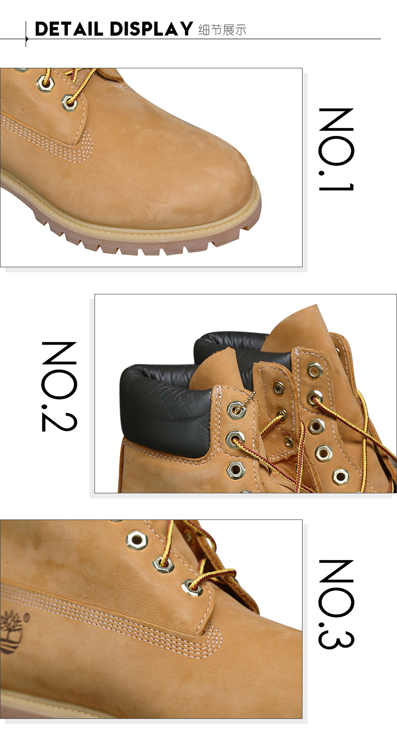 Timberland大黄靴功能比较实用,全粒面无缝拼接技术真皮,经过防水处理,冬季防水防雪,高帮设计可保护脚踝,标志性的Taslan fibers纤维鞋带+防锈六角形鞋带孔。耐穿的橡胶大底搭配抗疲劳技术鞋垫,虽然比较重,但依然很舒适。