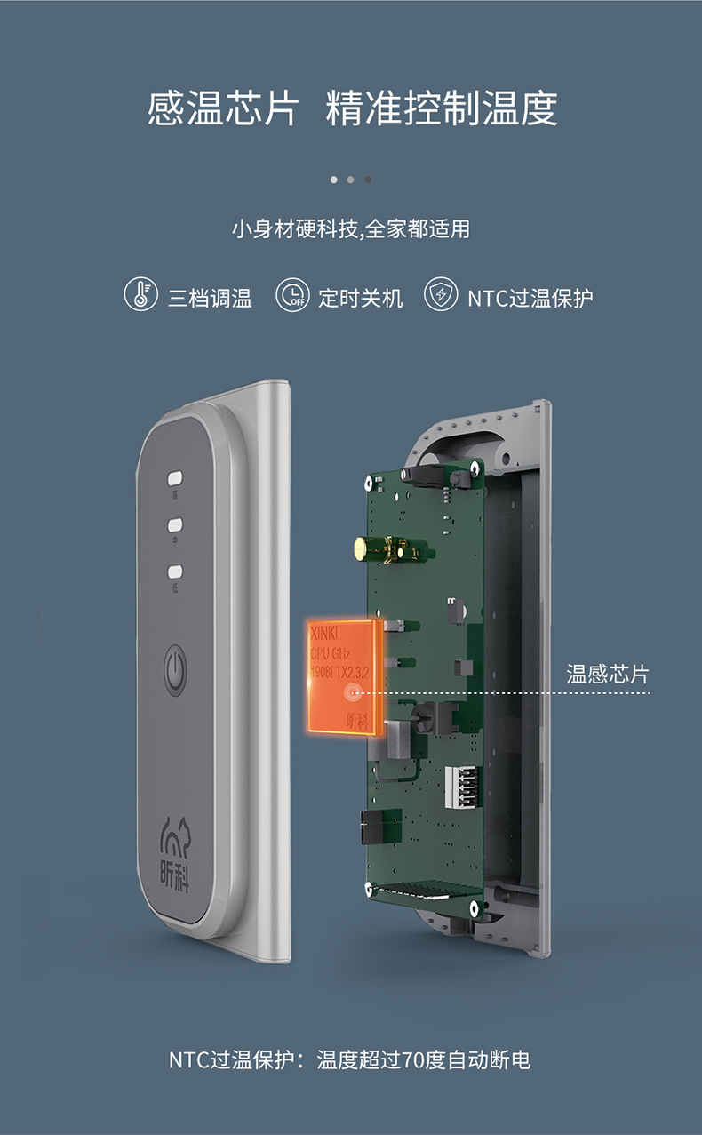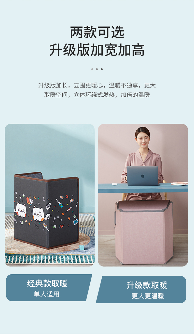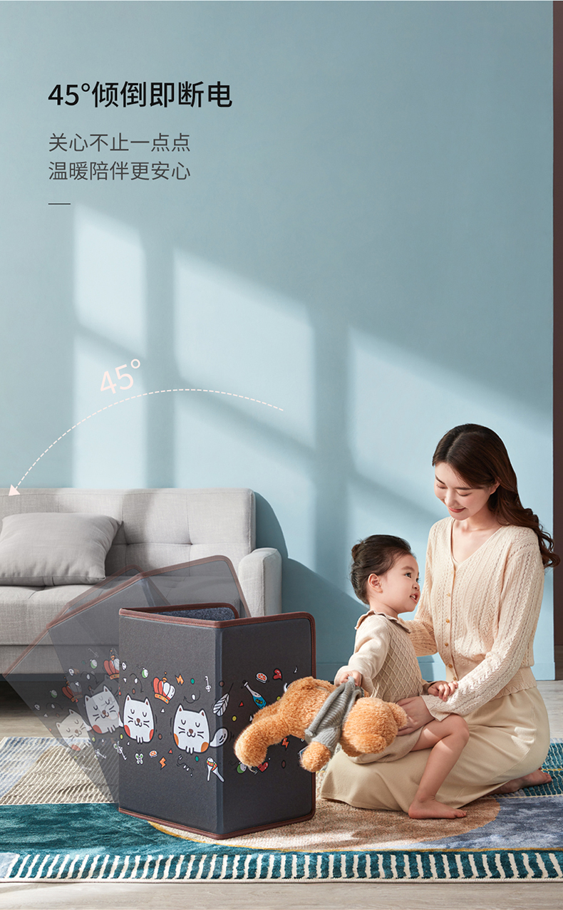 人性化保护3小时自动断电,150W小功率,节能环保宿舍、办公室都能用,三档温度调节,最高可达65度-45度,和热水浴的感觉差不多了,具备45°倾倒断电安全防护,可折叠收纳不占地。