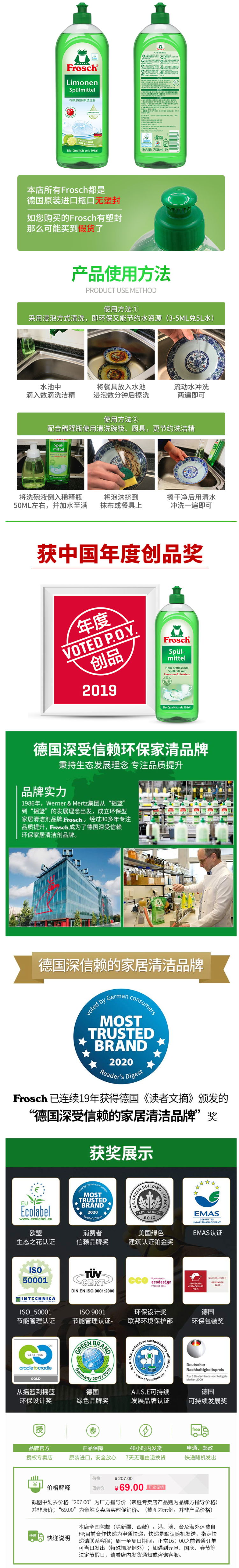 天猫frosch帝胜专卖店79元,可领30元优惠券,实付49元到手,规格是750ml*3瓶,下单赠稀释瓶1个。